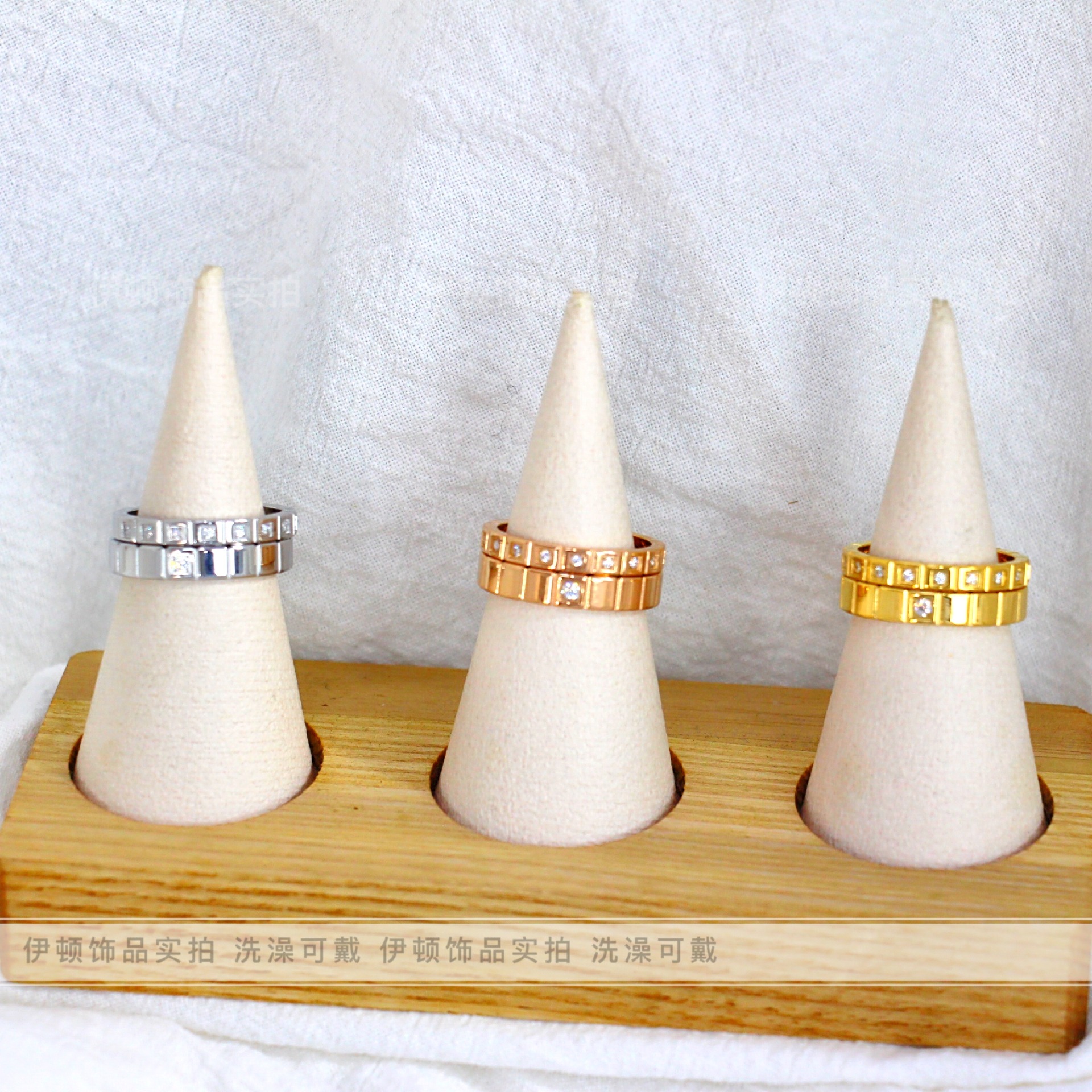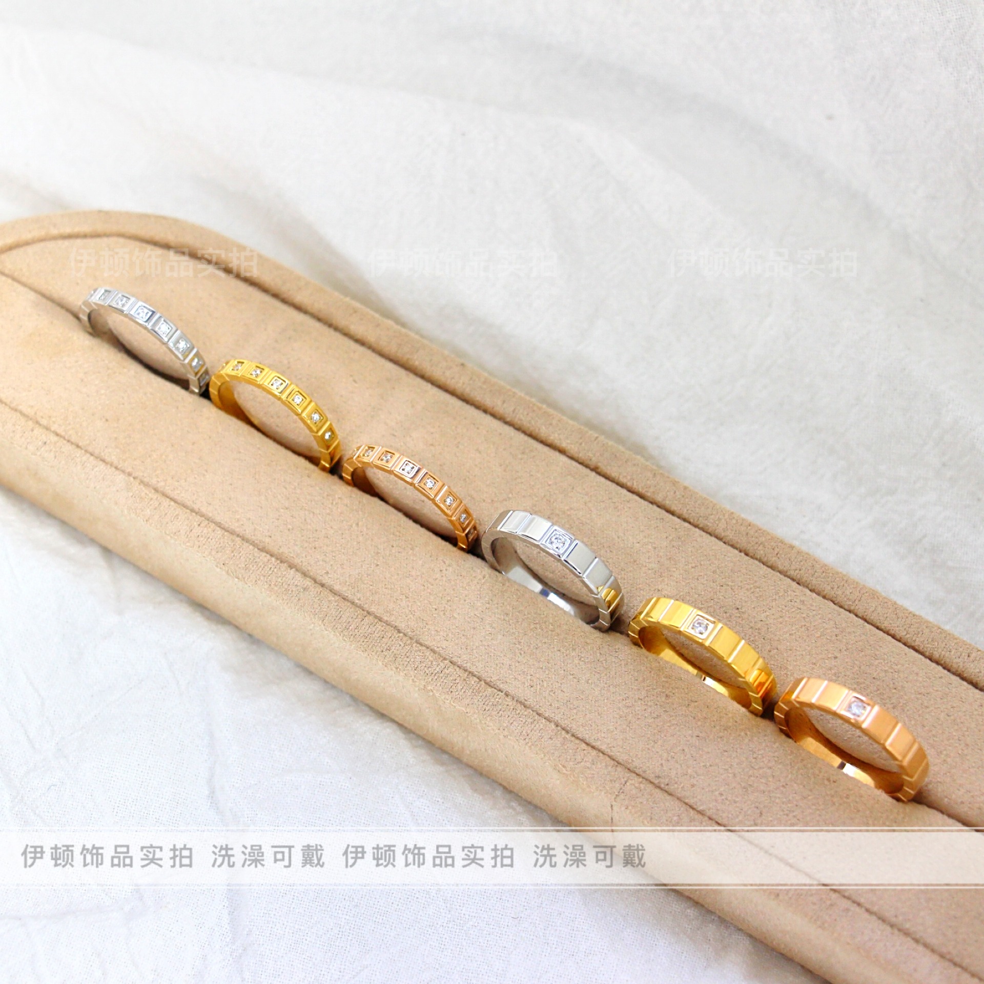 【钛钢不掉色】小众明星同款冰块微镶方块锆石情侣对戒 叠戴戒指