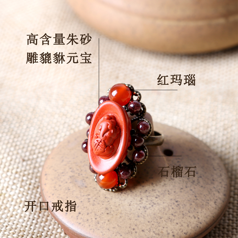 纯然饰品朱砂招财貔貅开口戒指女装饰指环红色配饰石榴石尾戒复古