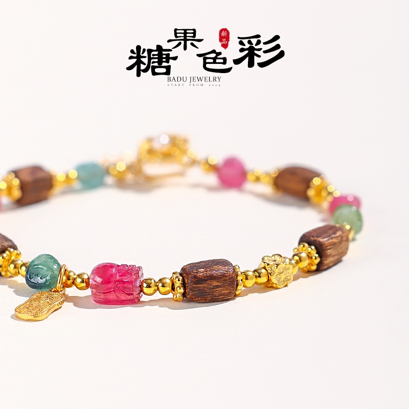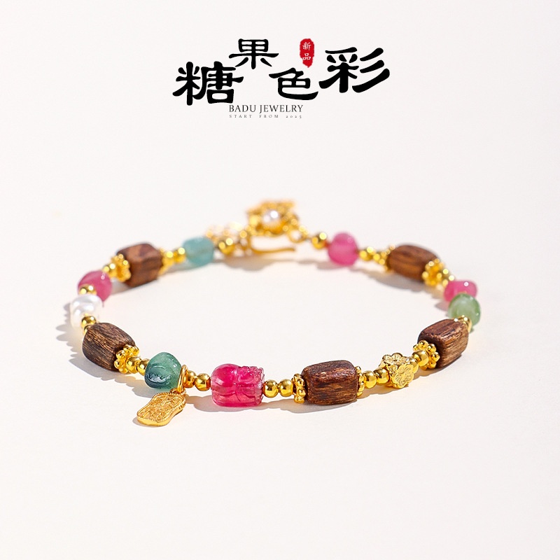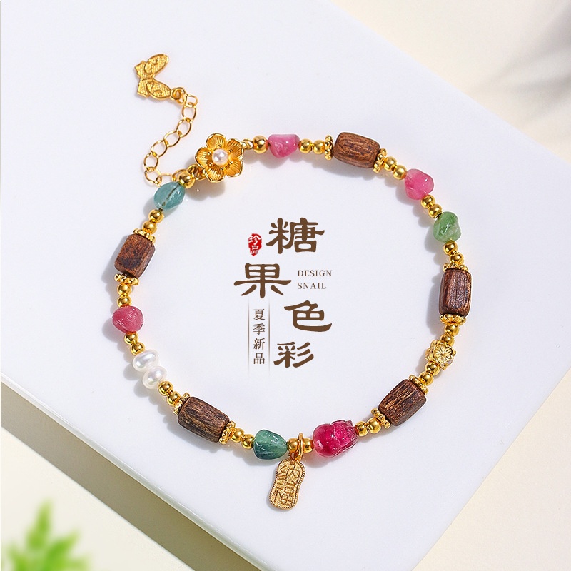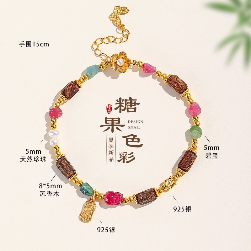 925银纳福牌天然珍珠沉香木串珠手链女高级感时尚碧玺手串首饰