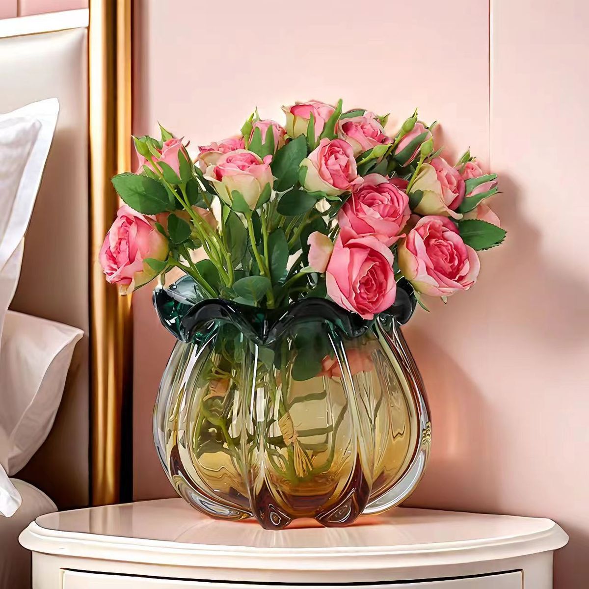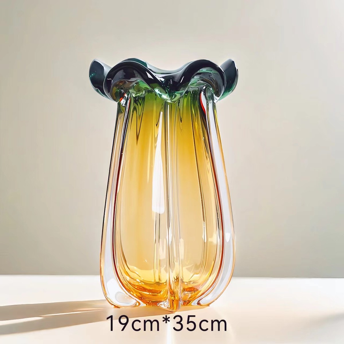 热销高档琥珀色边角艺术花瓶摆件现代简约餐桌琉璃几整体软装花艺