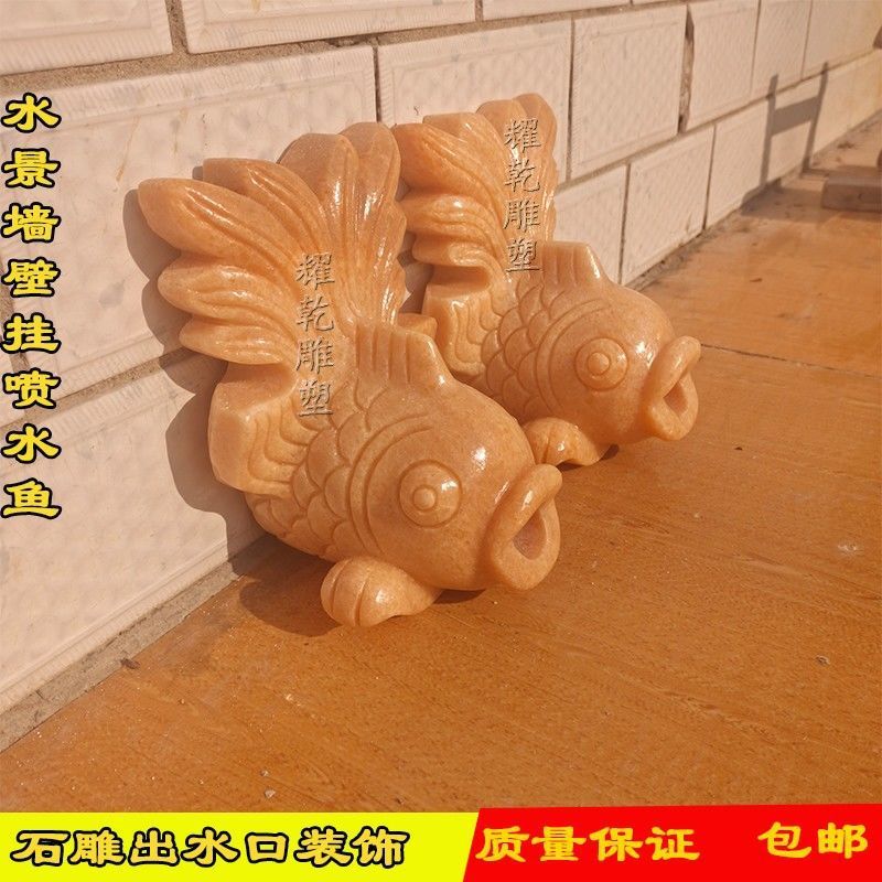 鱼缸出水口石雕喷水屋顶流水景观荷塘瀑布景墙壁水嘴挂装饰水鱼吐