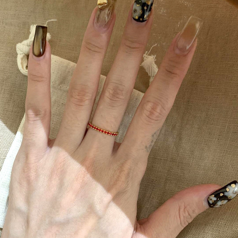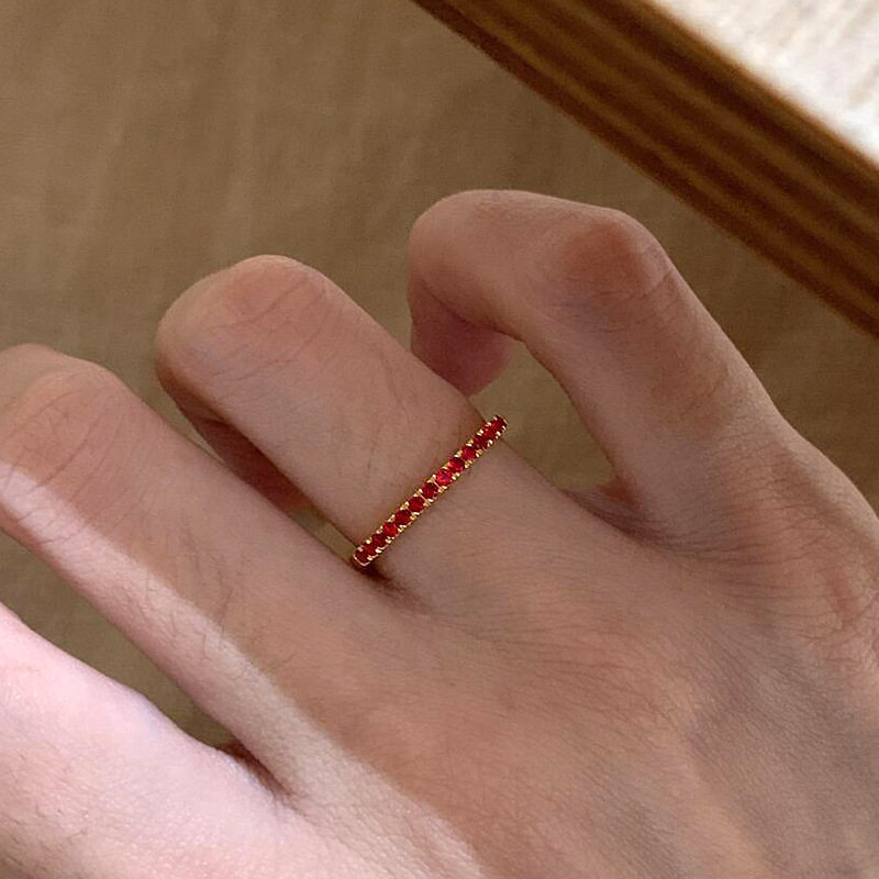 爆款红色锆石排钻戒指轻奢小众设计时尚百搭高级感指环