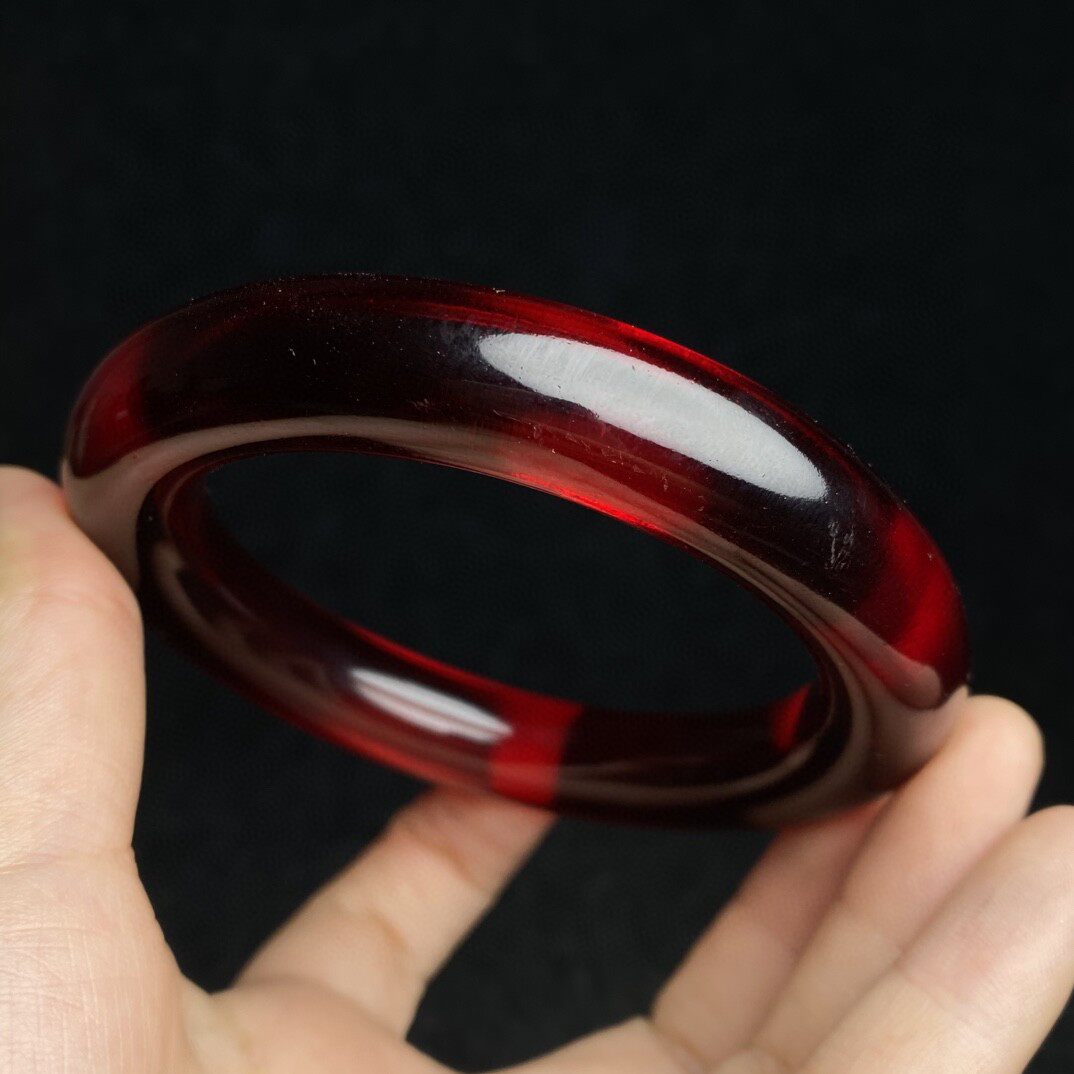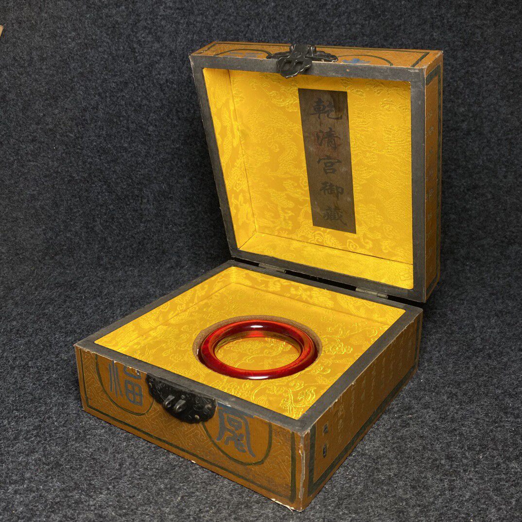 古玩杂项旧藏怀旧物件饰品类礼品切面刚玉手镯搭配精美漆器盒子
