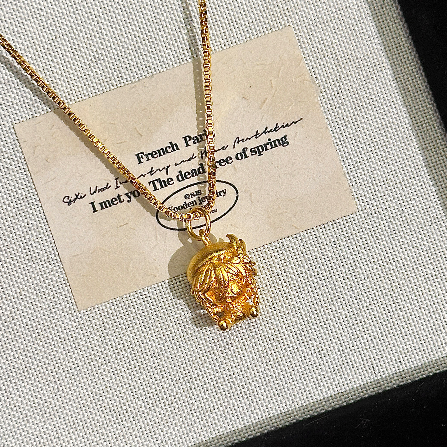 香菱玩偶新款时尚轻奢金色气质通勤优雅锁骨项链高级感精致百搭女
