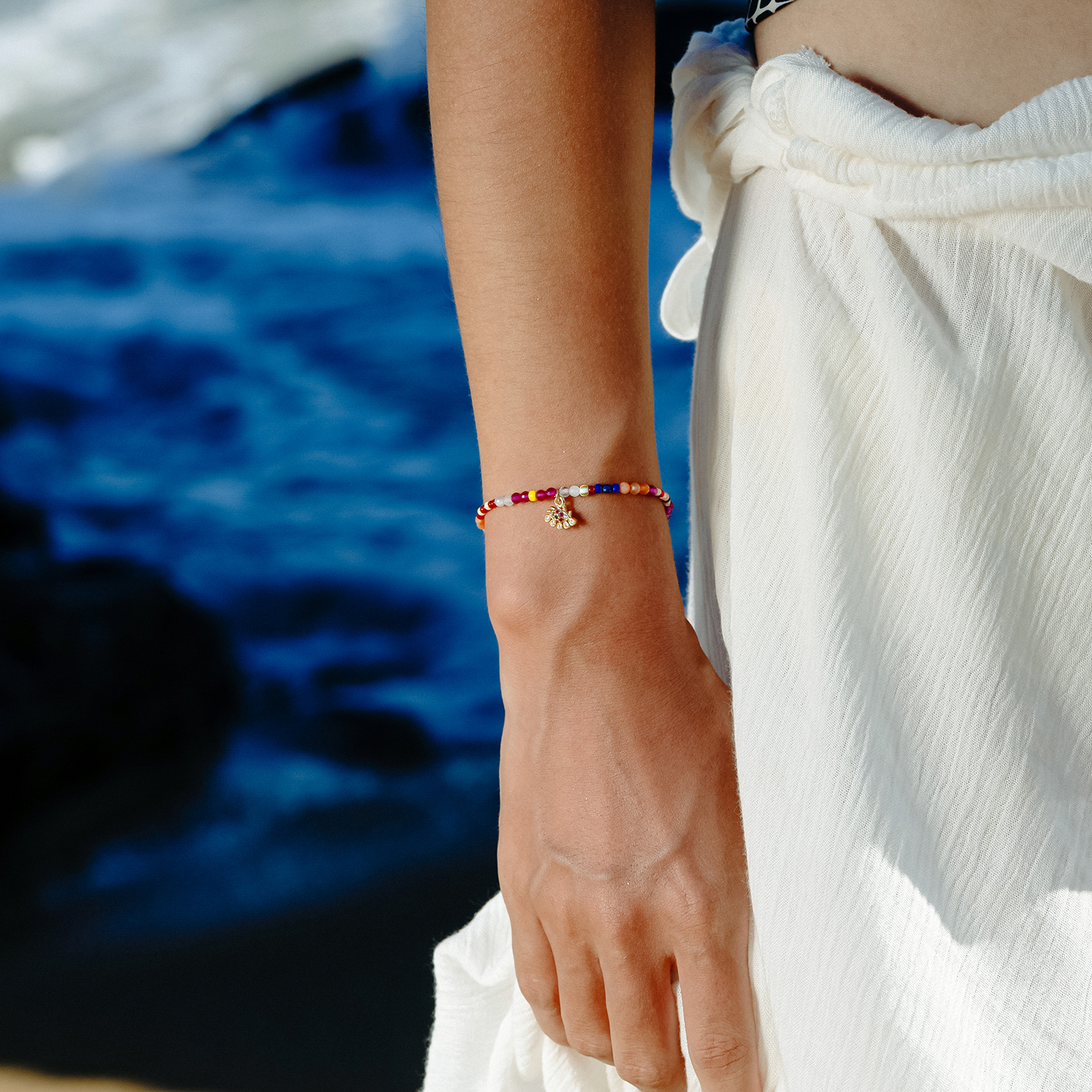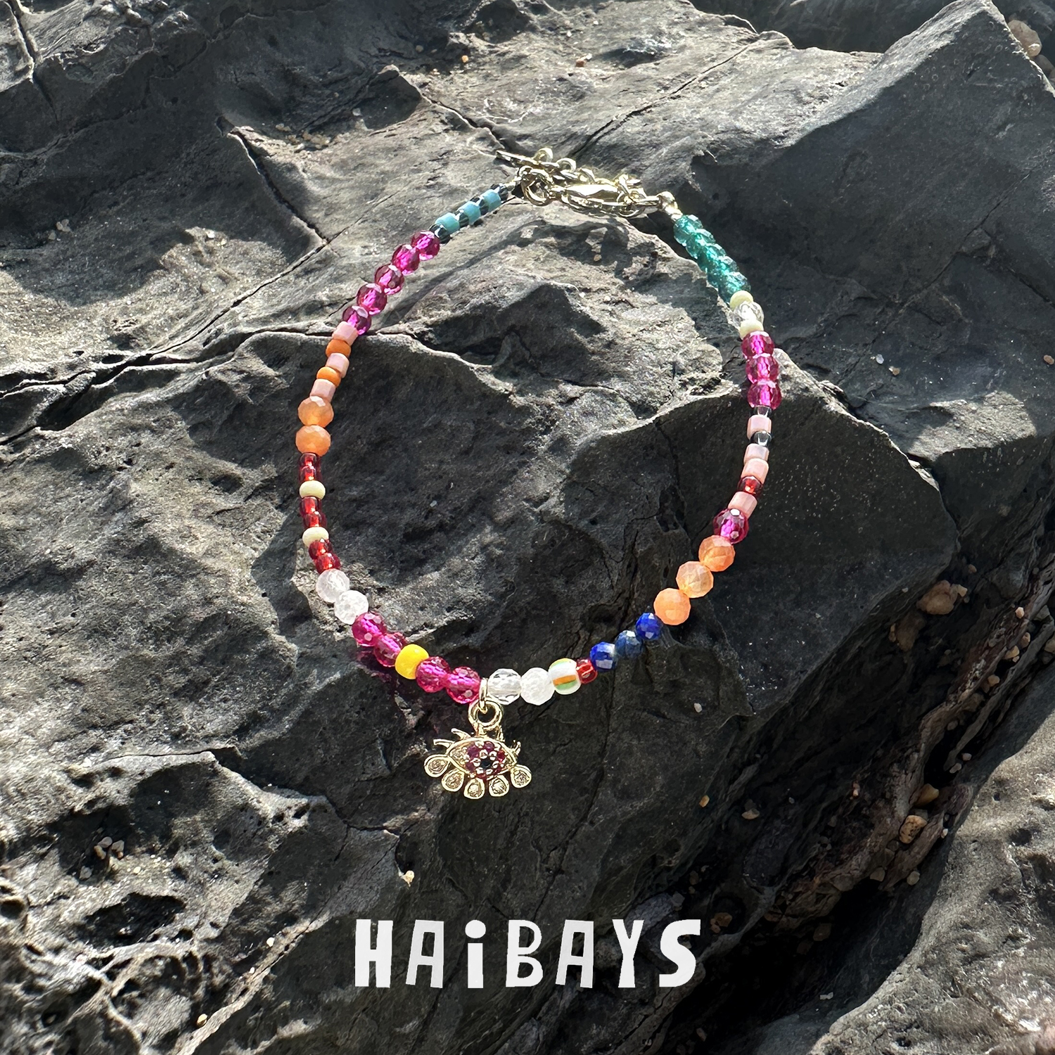 Haibays 原创设计红刚玉手链女小众恶魔之眼镀金吊坠叠戴度假配饰