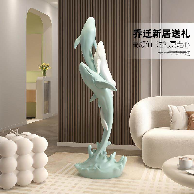 轻奢鲸鱼大型落地灯摆件家居饰品客厅电视柜沙发旁艺术雕塑工艺礼