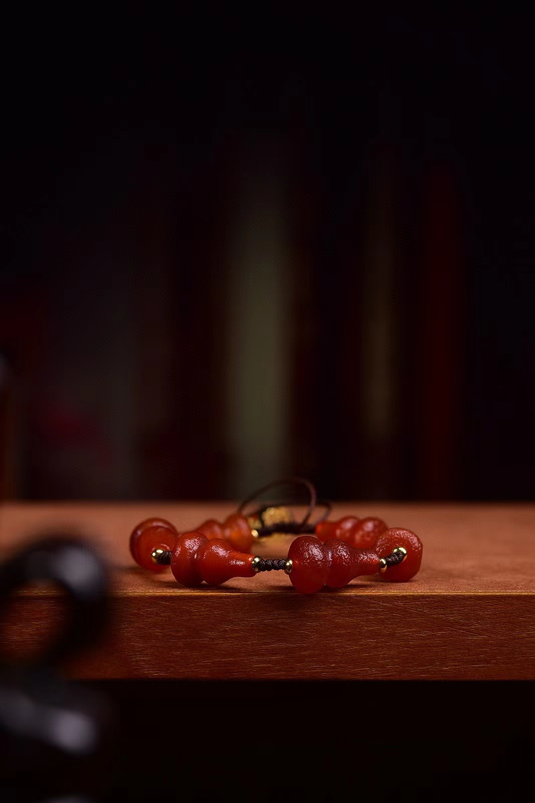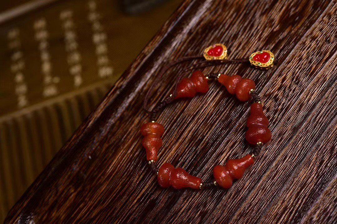 藏式天然正品红玛瑙立体通孔小葫芦手链 红色玉髓葫芦挂坠