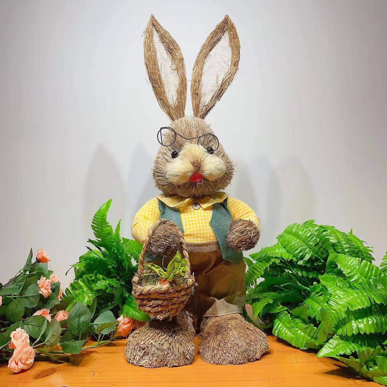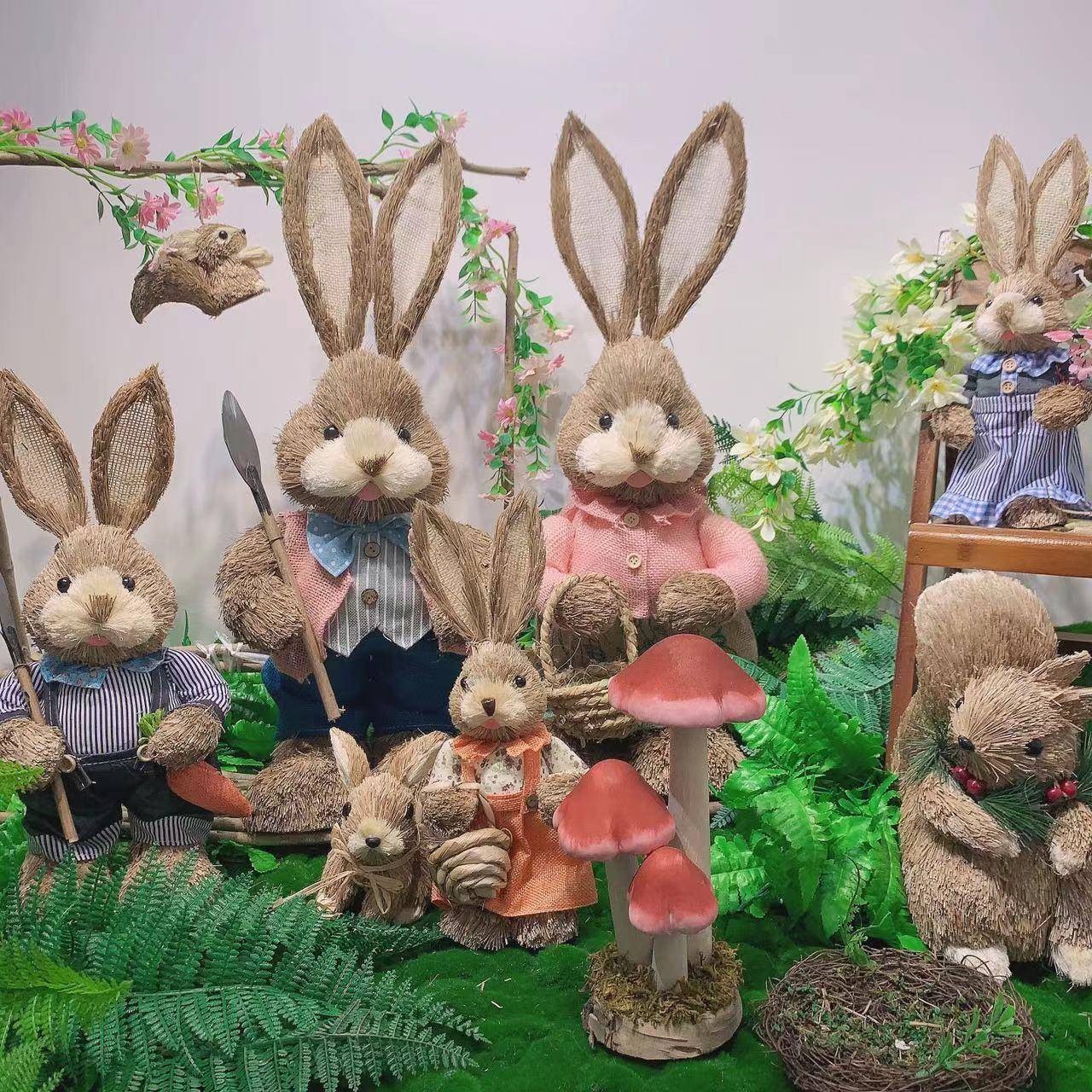 草编兔子摆件幼儿园环创植物角森系家居客厅橱窗婚庆摆件拍摄道具