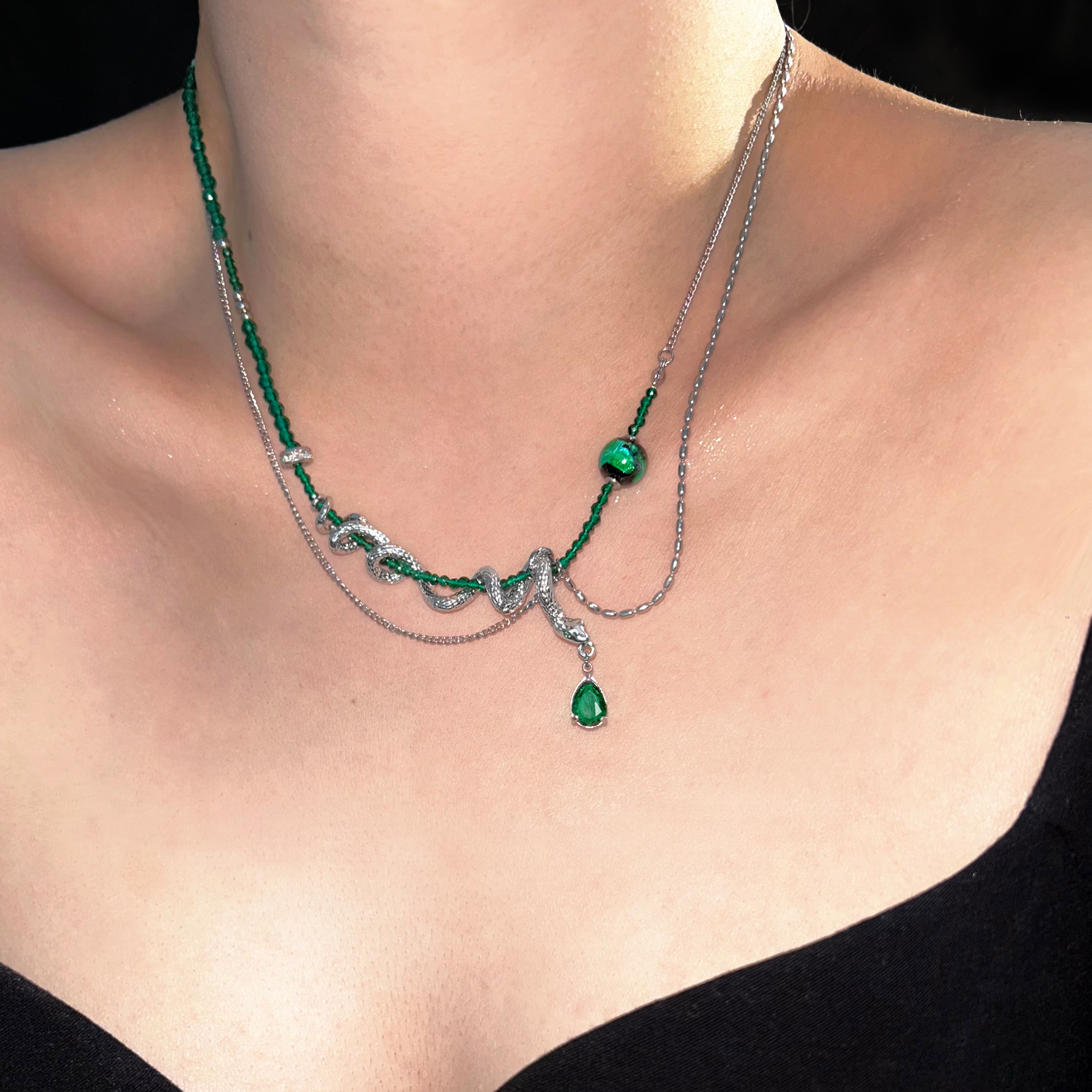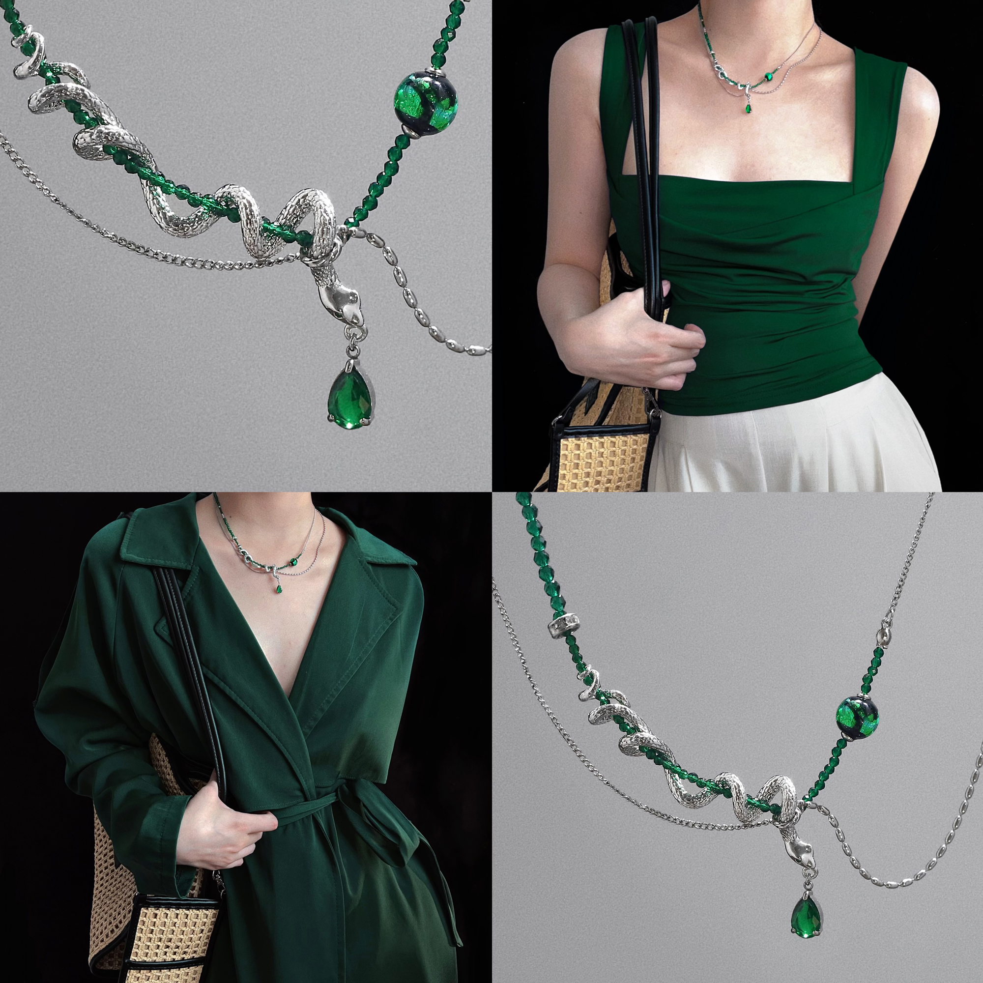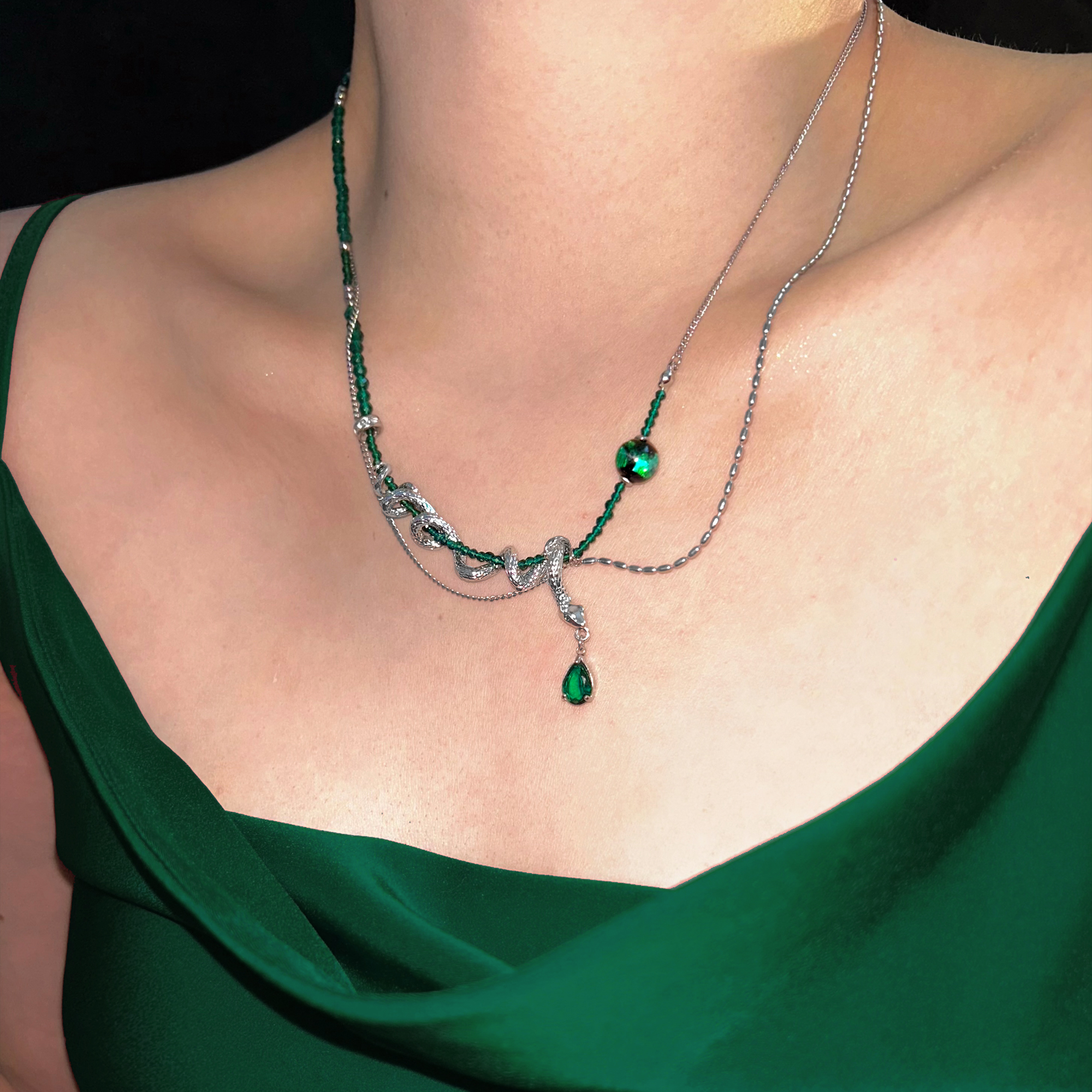 SU浮空岛「斯莱特林」蛇院原创设计小众高级感项链祖母绿色锁骨链