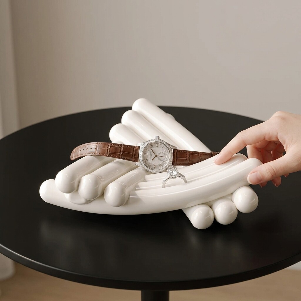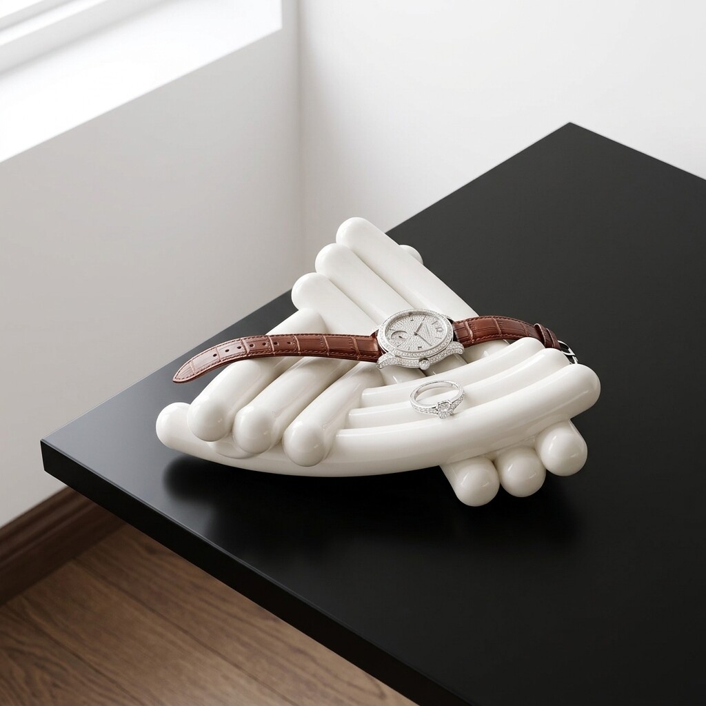 创意手形陶瓷收纳摆件白色家居装饰品桌面整理艺术品