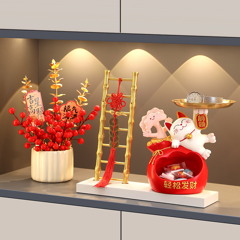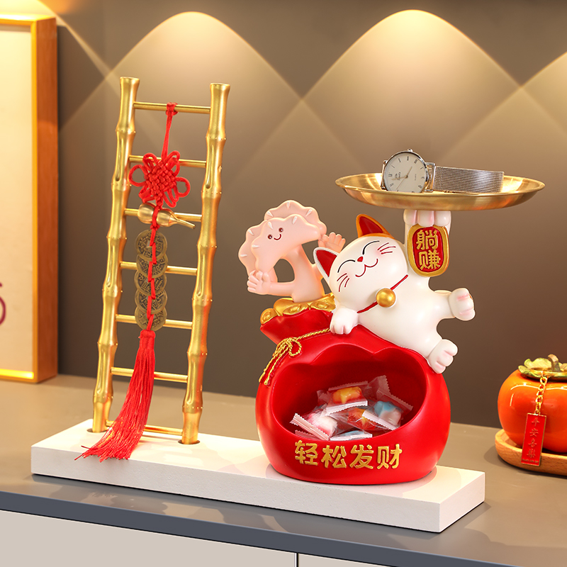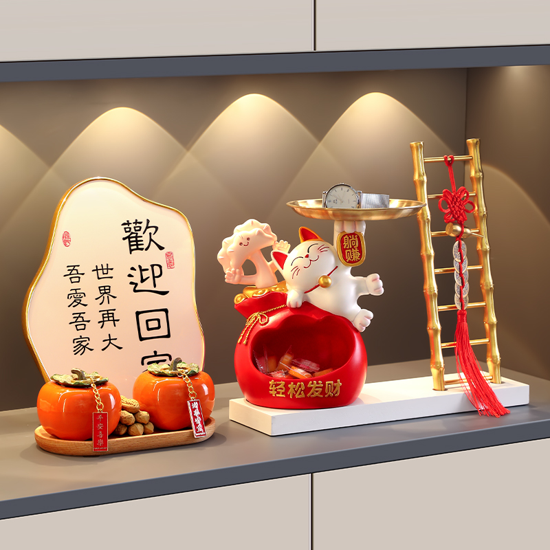 招财猫摆件入户玄关钥匙收纳客厅鞋柜电视柜装饰家居乔迁新居礼物