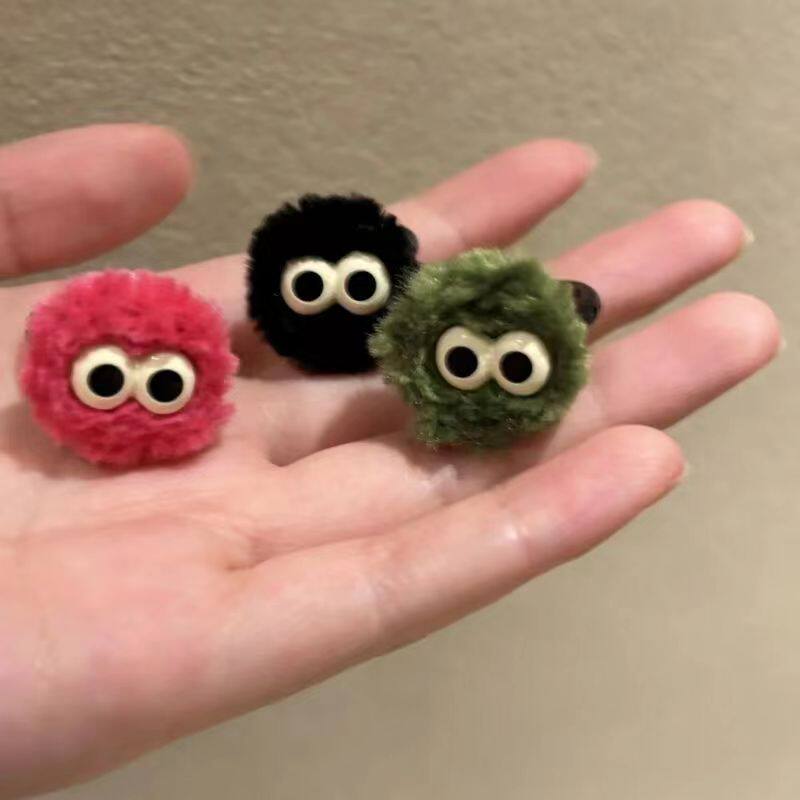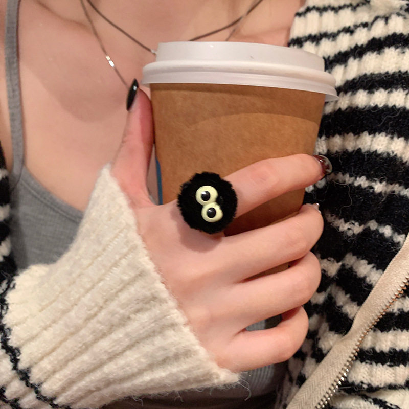 卡通搞怪小煤球毛绒戒指可爱女秋冬小众设计感食指戒时尚个性指环