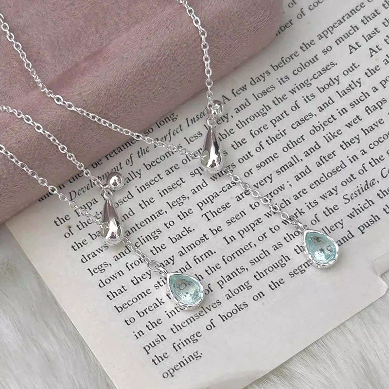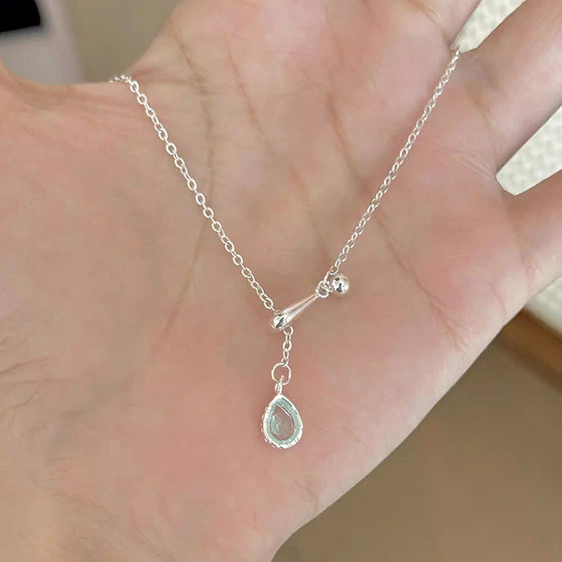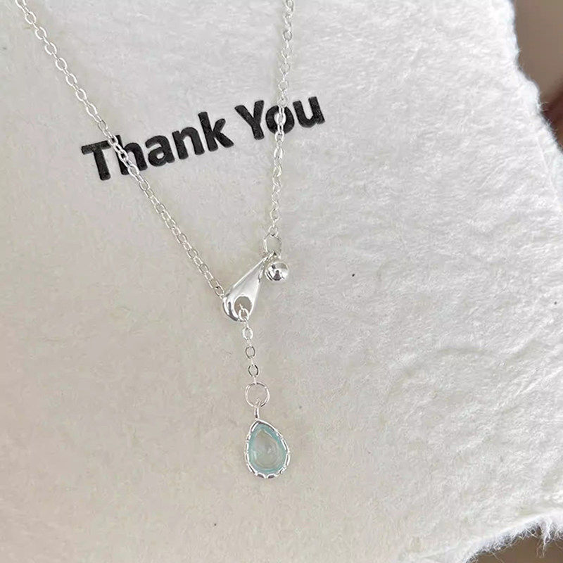 简约时尚一滴泪蓝色水滴项链抽拉式可调节小清新甜美高级感锁骨链