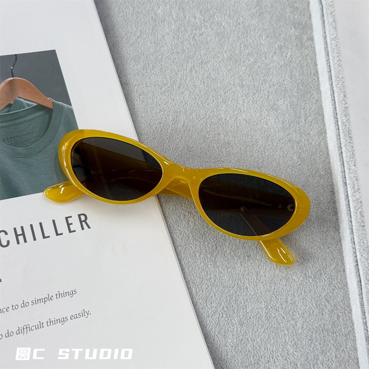 韩版新款白色猫眼椭圆墨镜女小脸辣妹ins拍照高级感防晒太阳镜潮