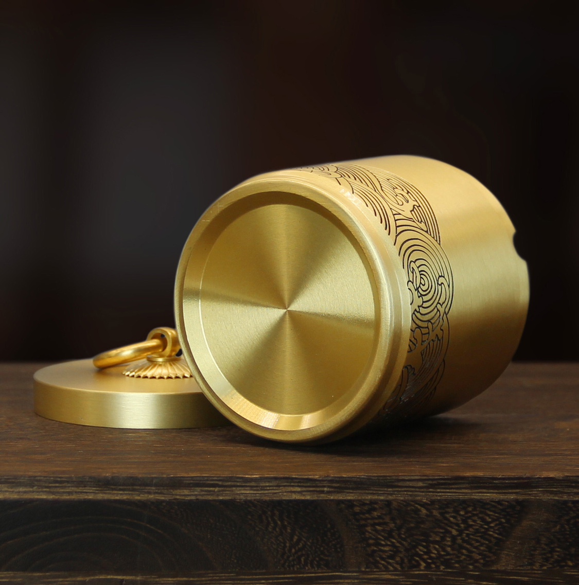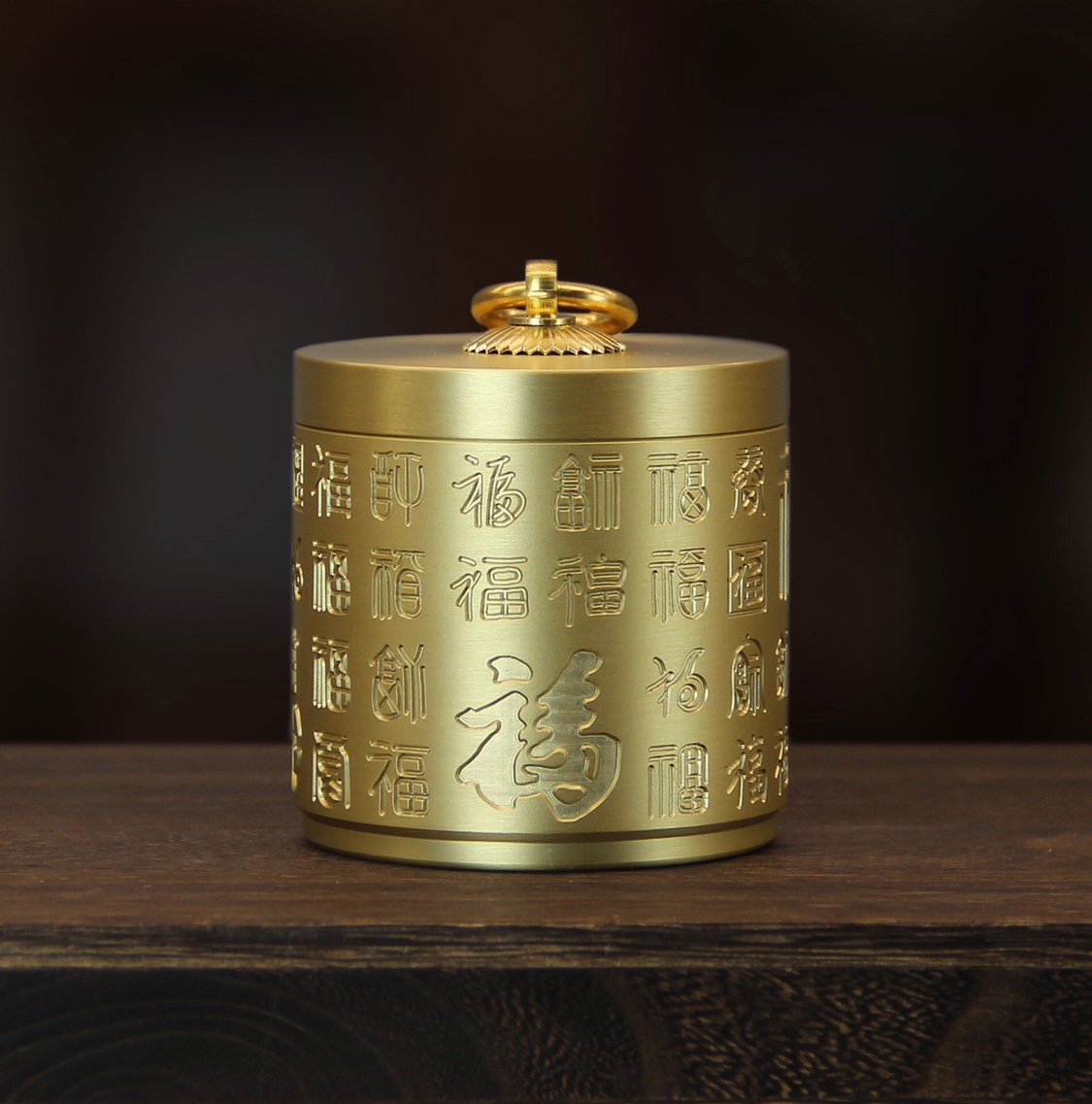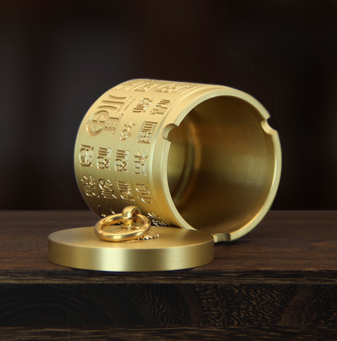 黄铜车载烟灰缸车用家居办公室摆件祥云带盖烟灰缸中式全铜摆件