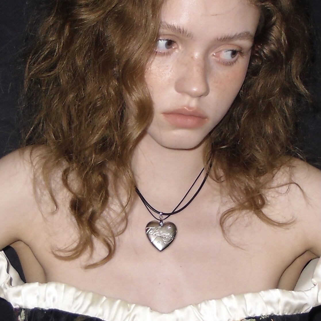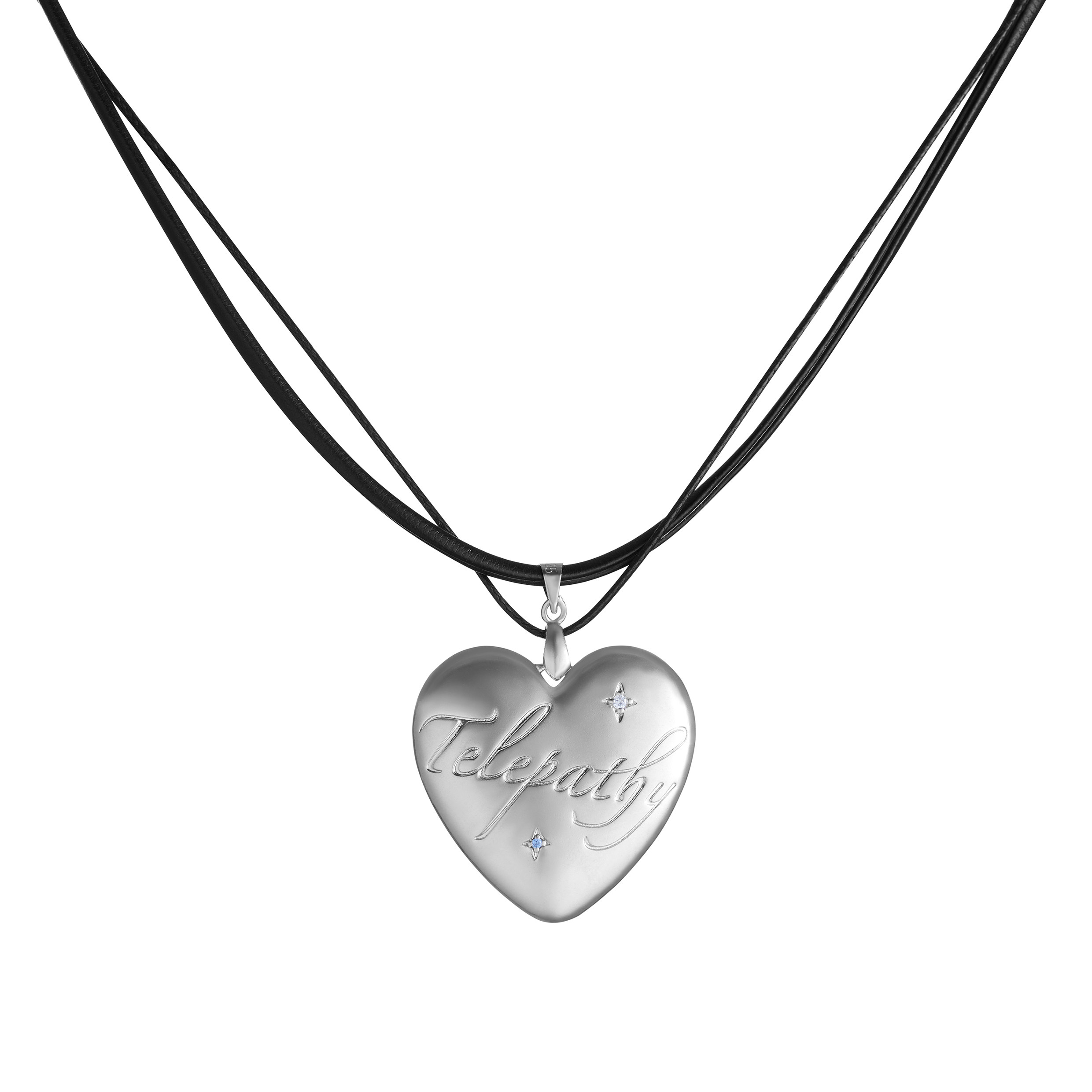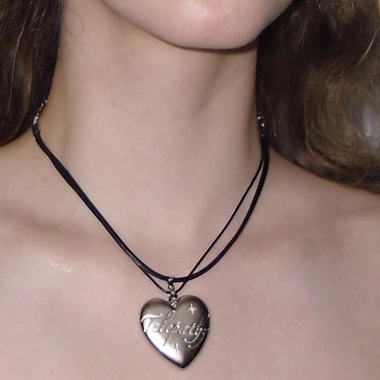 1P Jewelry Telepathy心灵感应系列皮绳大爱心字母锆石镶嵌项链