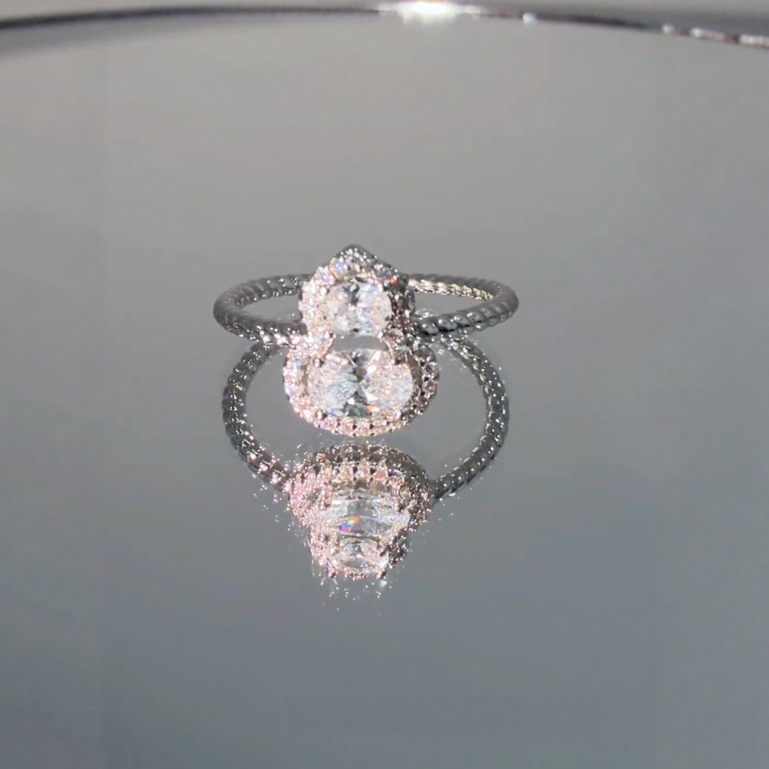旭平【清风徐来】葫芦戒指新中式白色微镶闪亮高级感气质银色戒指