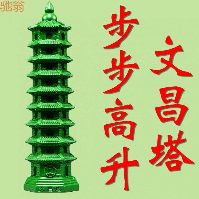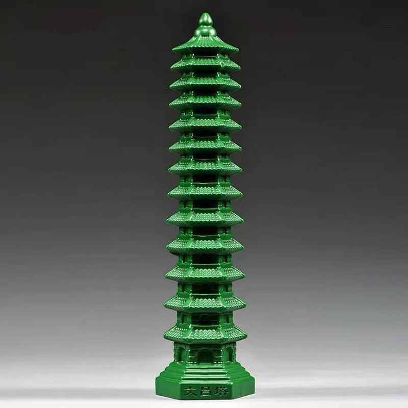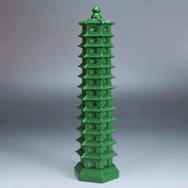 Q2W绿色木雕刻13层文昌塔摆件木头十三层家居客厅办公室装饰品一