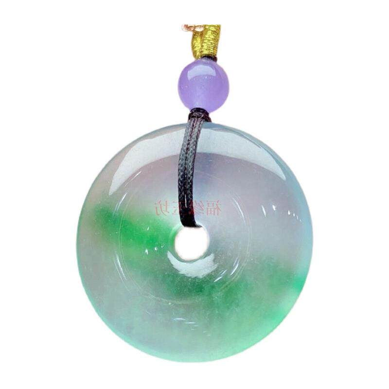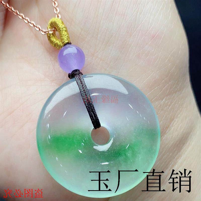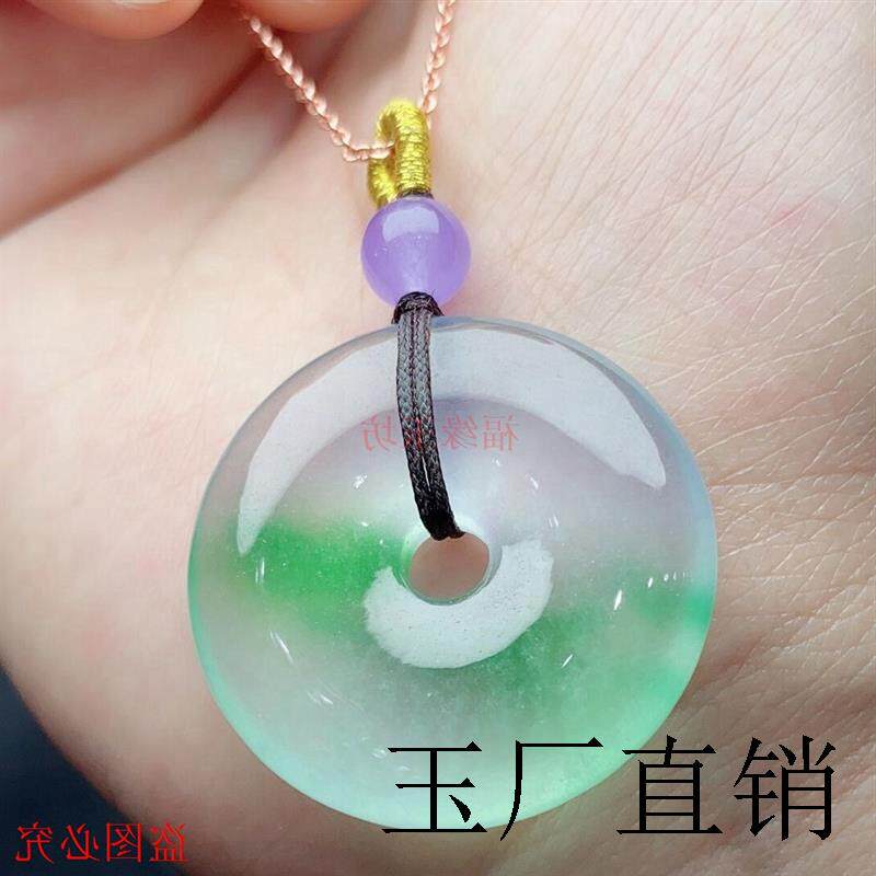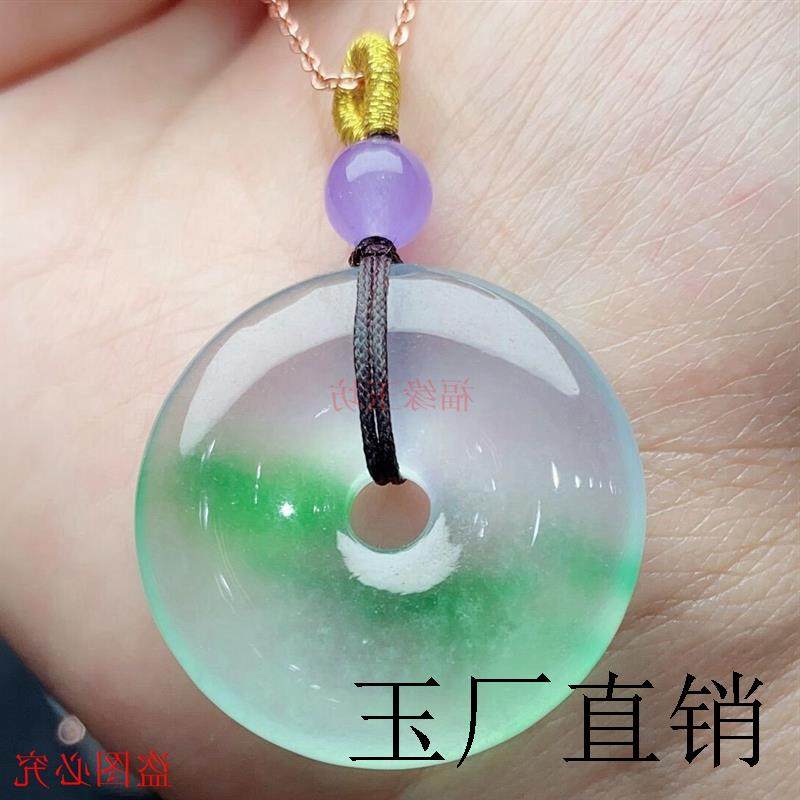 老坑料冰种飘花翡翠色吊坠高端缅甸飘绿花平安扣帝王绿阳绿玉挂件