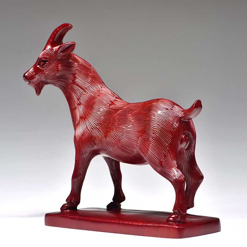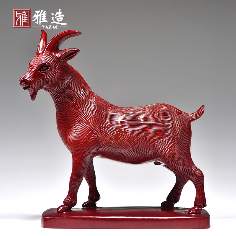 红色木质c雕刻生肖羊摆件实木吉祥物工艺品装饰品客厅家居桌面摆