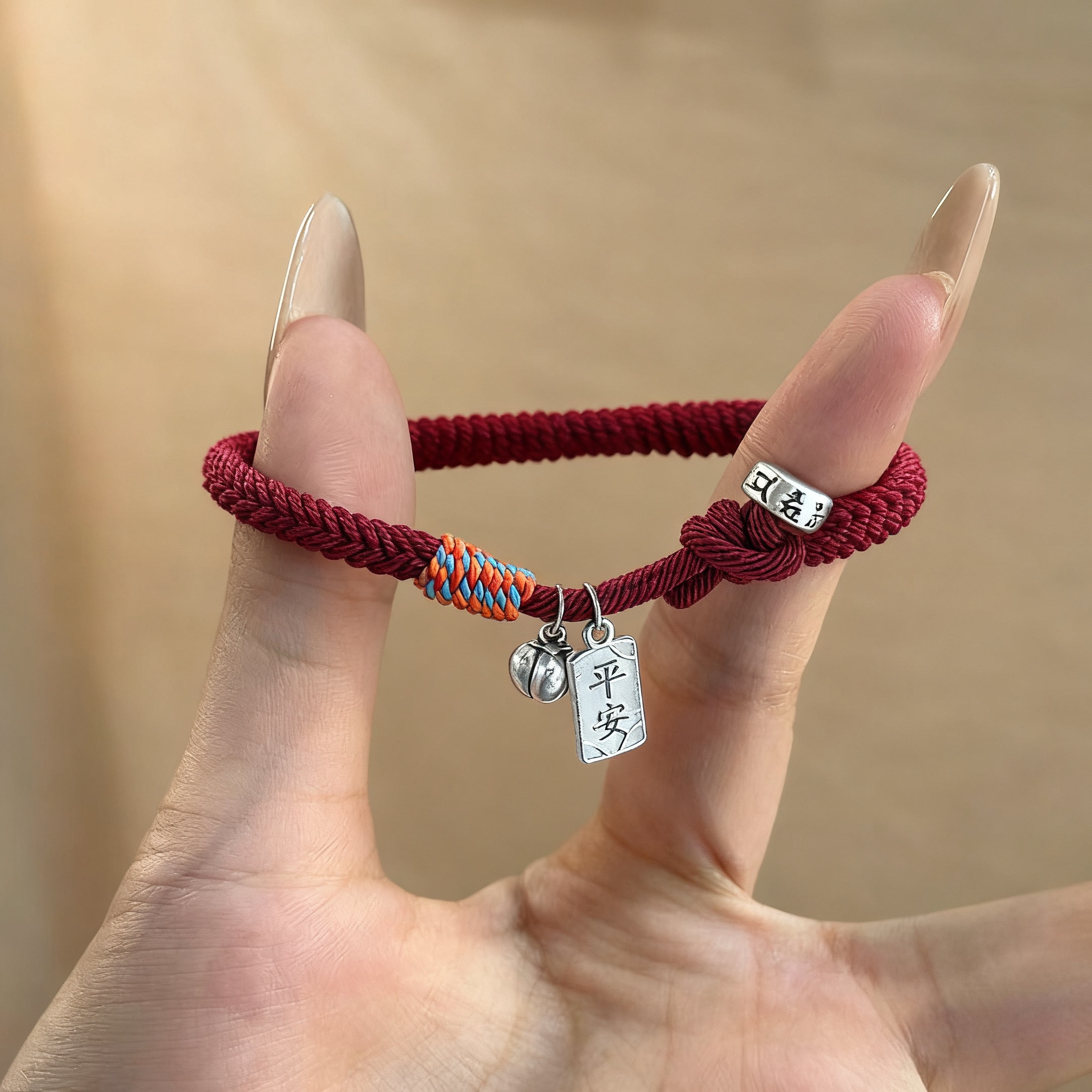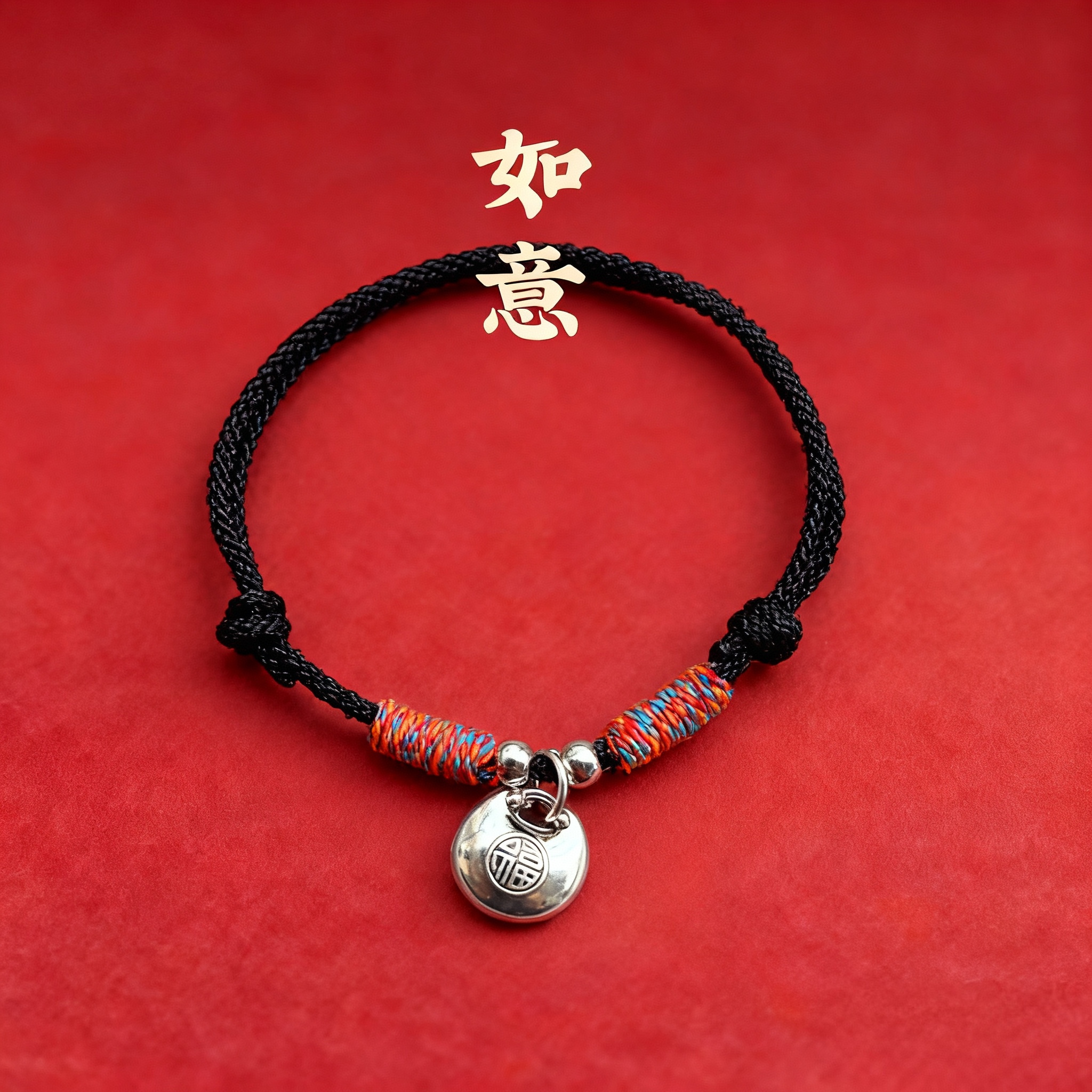 实心银手链足银平安福锁情侣款纯银手链生日礼物本命年男女红手绳