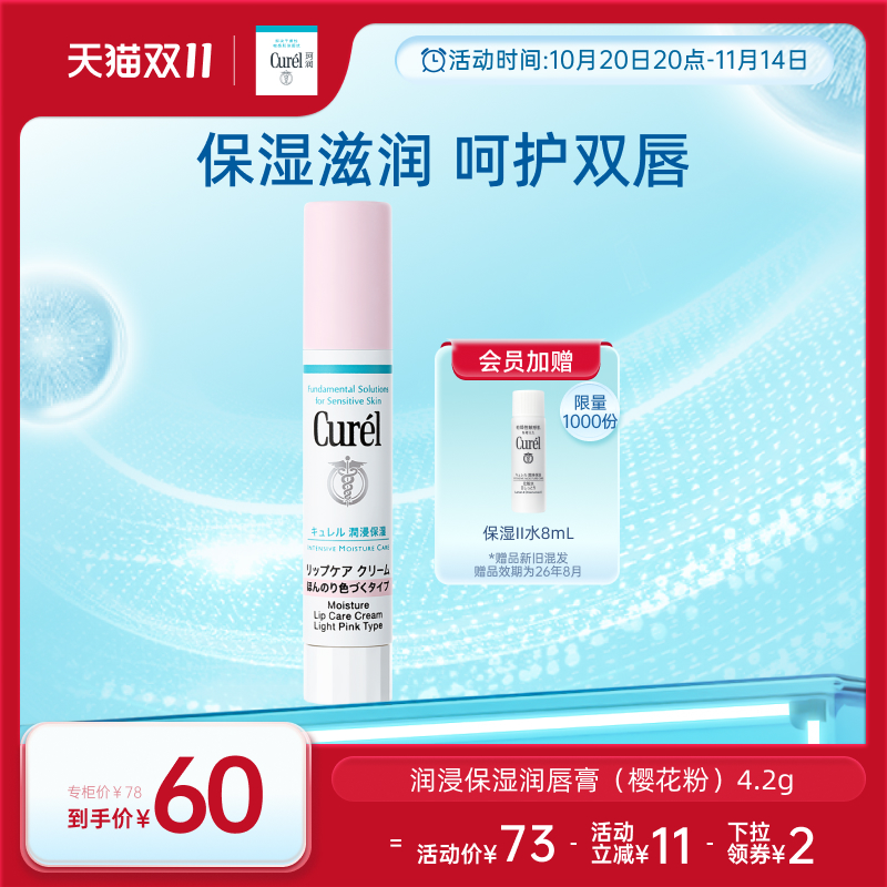 【双11狂欢】珂润保湿柔润唇膏4.2g滋润补水男女透明色/樱花粉