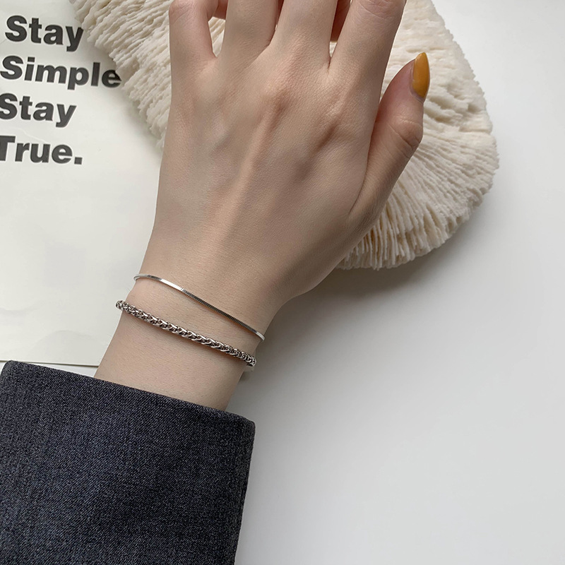 925纯银手链女ins潮嘻哈小众设计简约冷淡风简单大方叠戴男士手饰