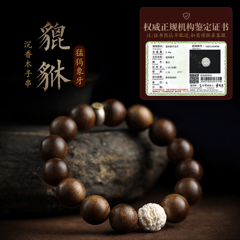 沉香木手串猛犸象牙貔貅文玩佛珠盘玩念珠本命佛普贤文殊菩萨手链