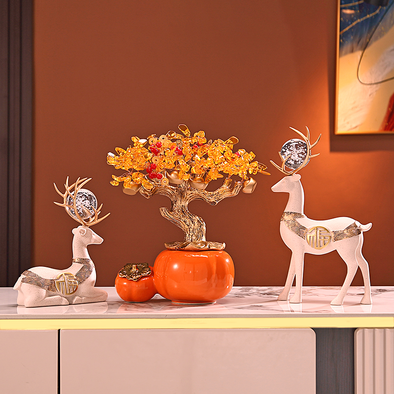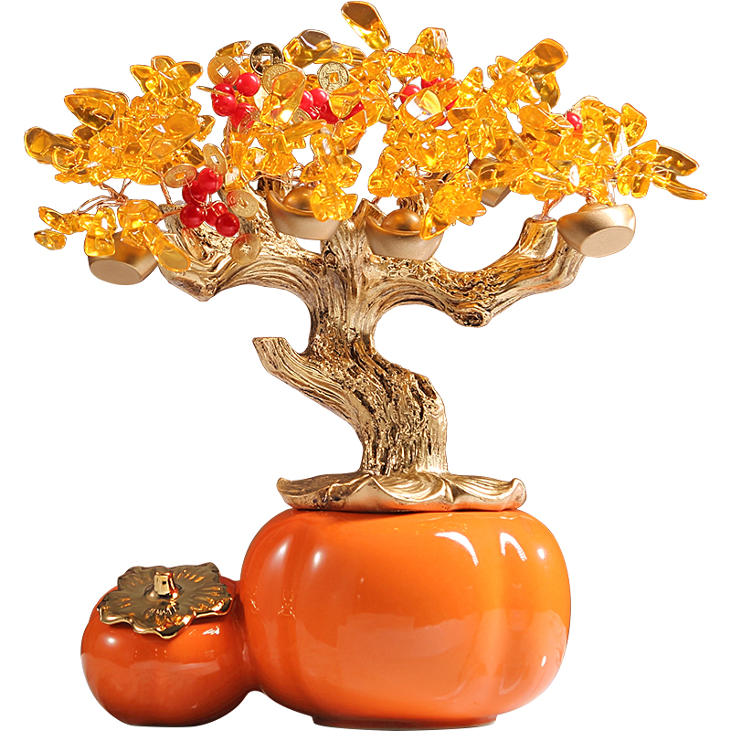事事如意柿子摆件发财树摇钱树客厅酒柜前台柜台装饰品搬新家礼品