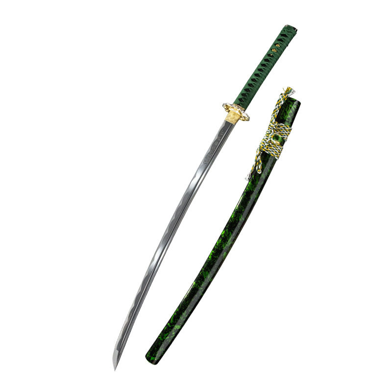 外贸手工锻打日本刀东洋打刀龙泉一体长刀武士打刀绿色未开刃