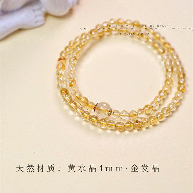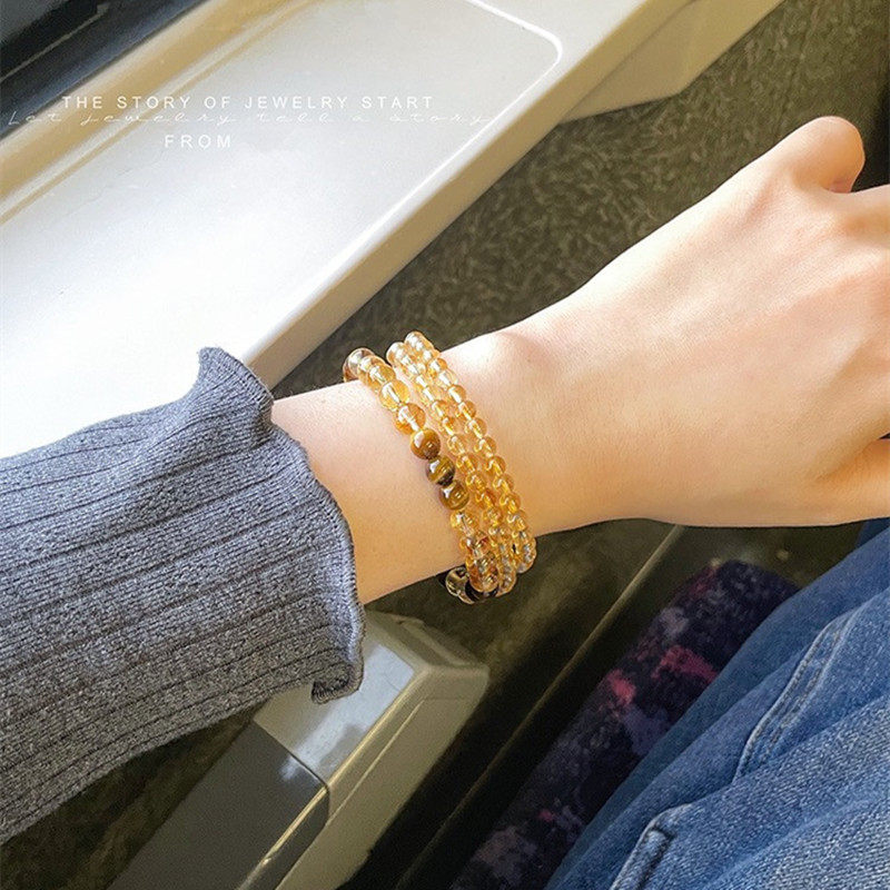 正品天然黄水晶手链女款双圈招财发晶转运珠巴西黄色水晶手串饰品