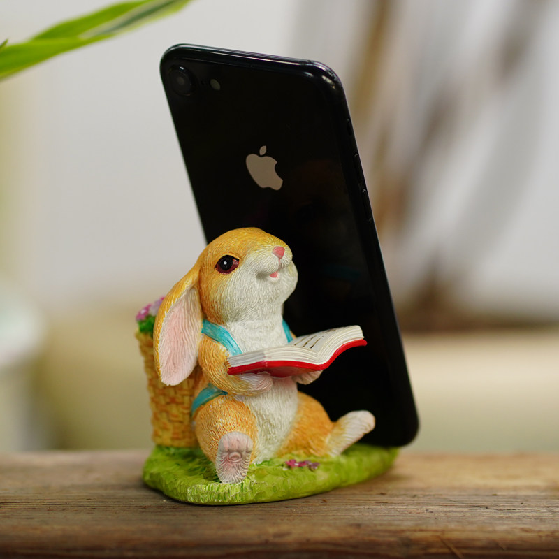 可爱小兔子看书手机支架桌面解压治愈工位装饰品摆件礼物追剧神器