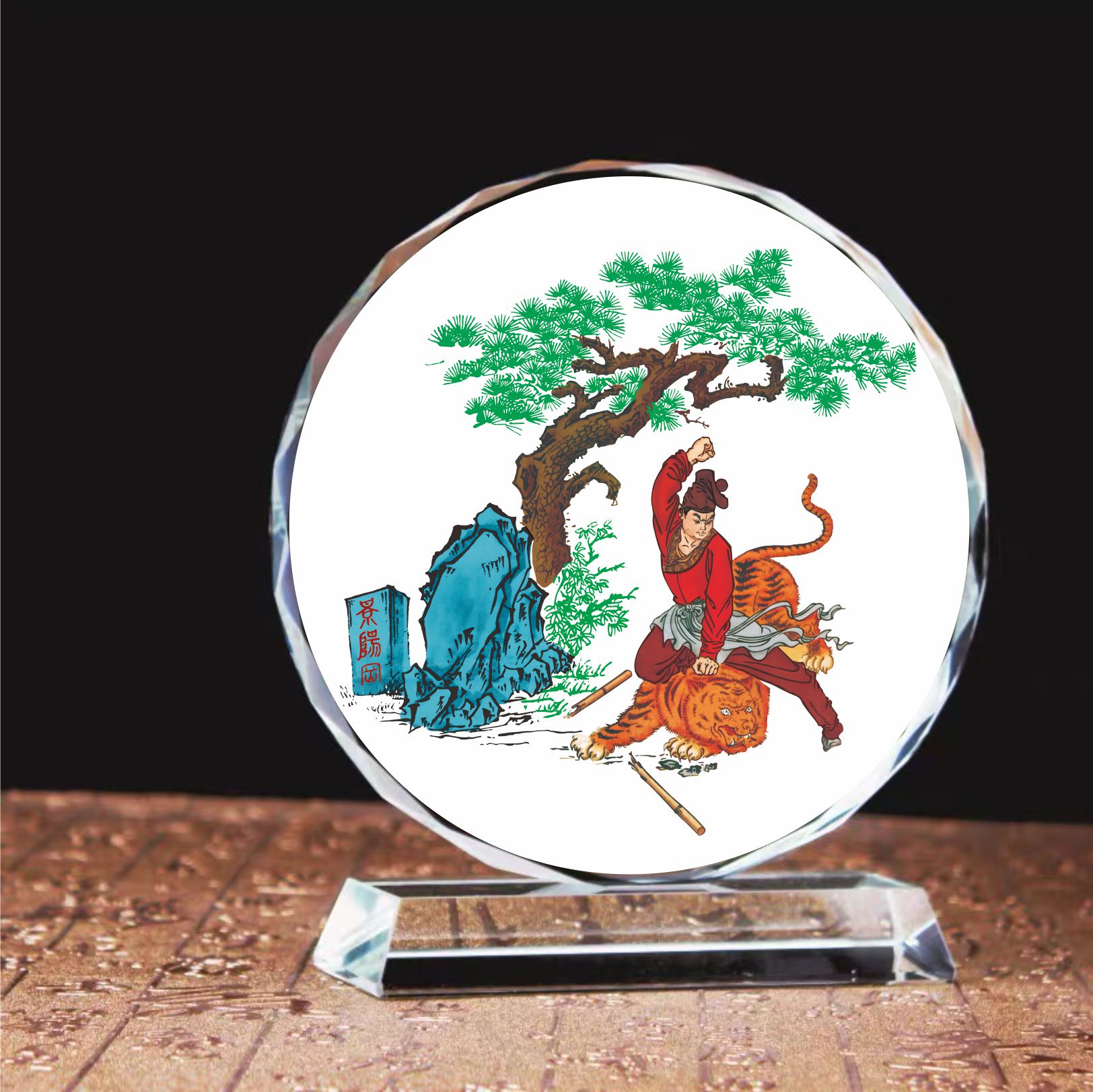 四大名著水浒传武松打虎画像珍藏纪念品水晶摆件工艺品模型装饰品