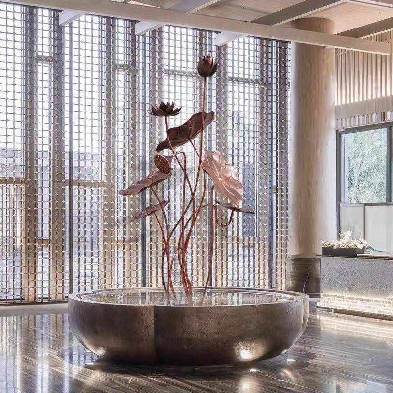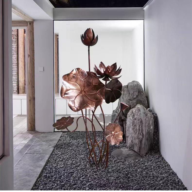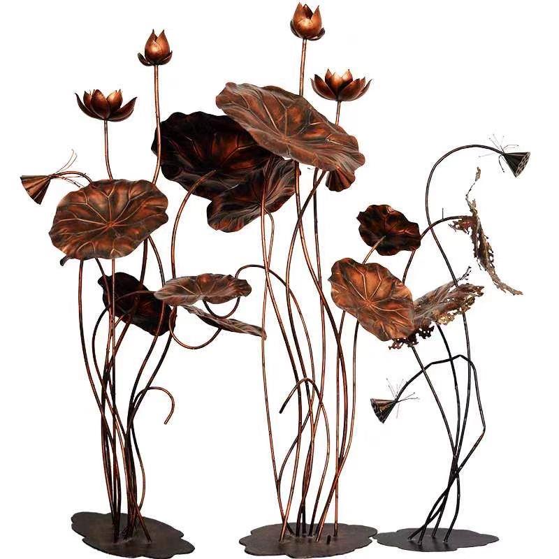 不锈钢金属荷叶铁艺荷花雕塑落地摆件酒店户外水池水景软装装饰品