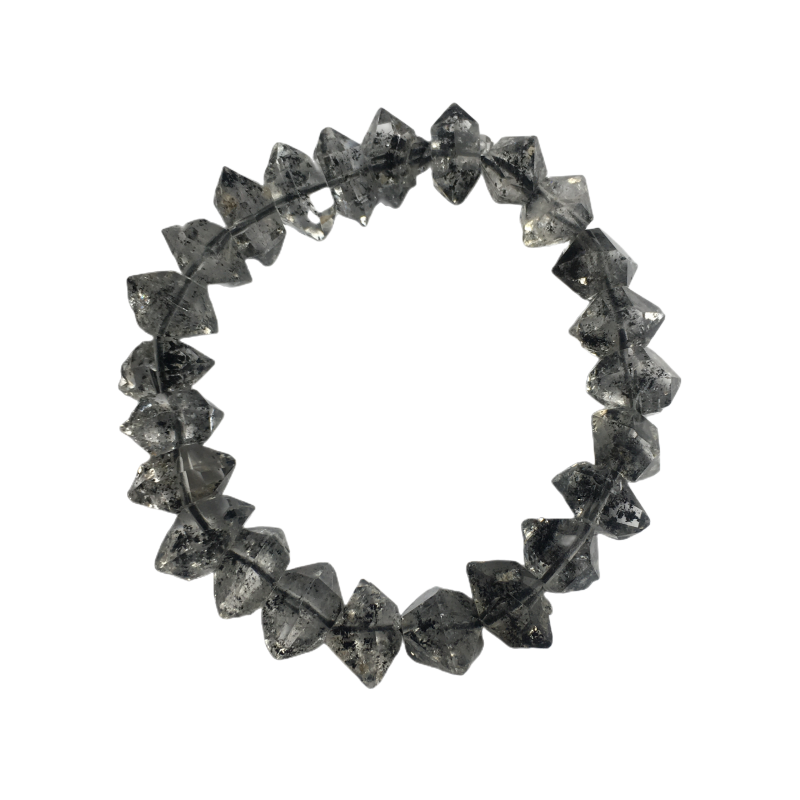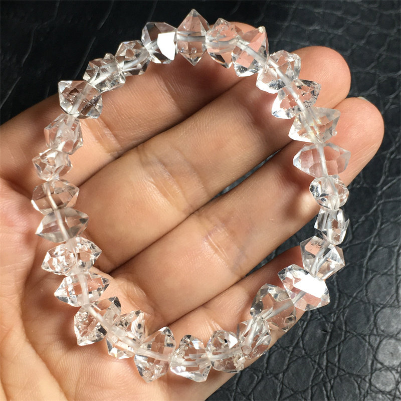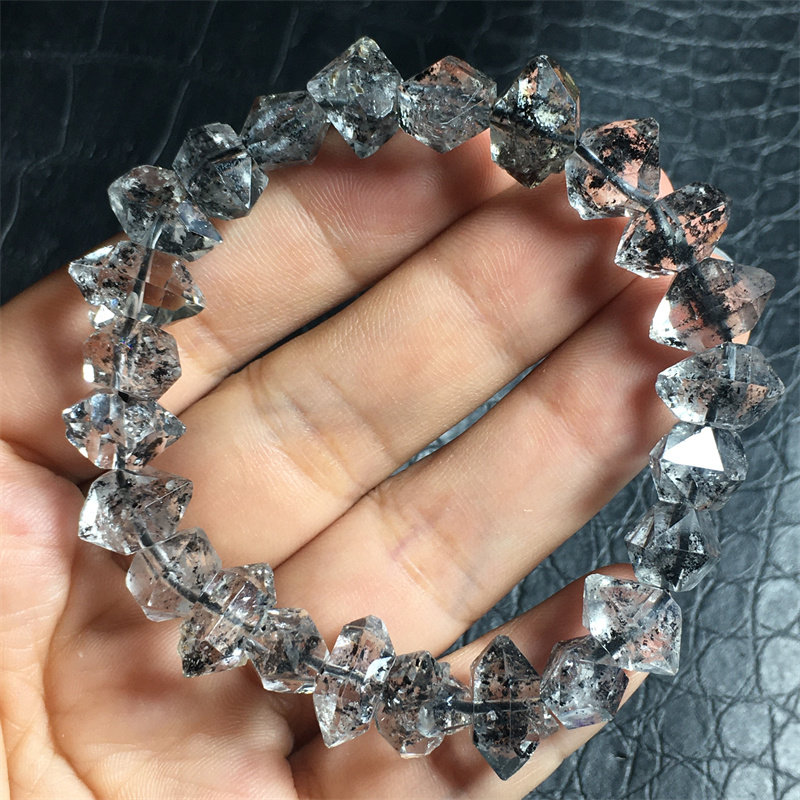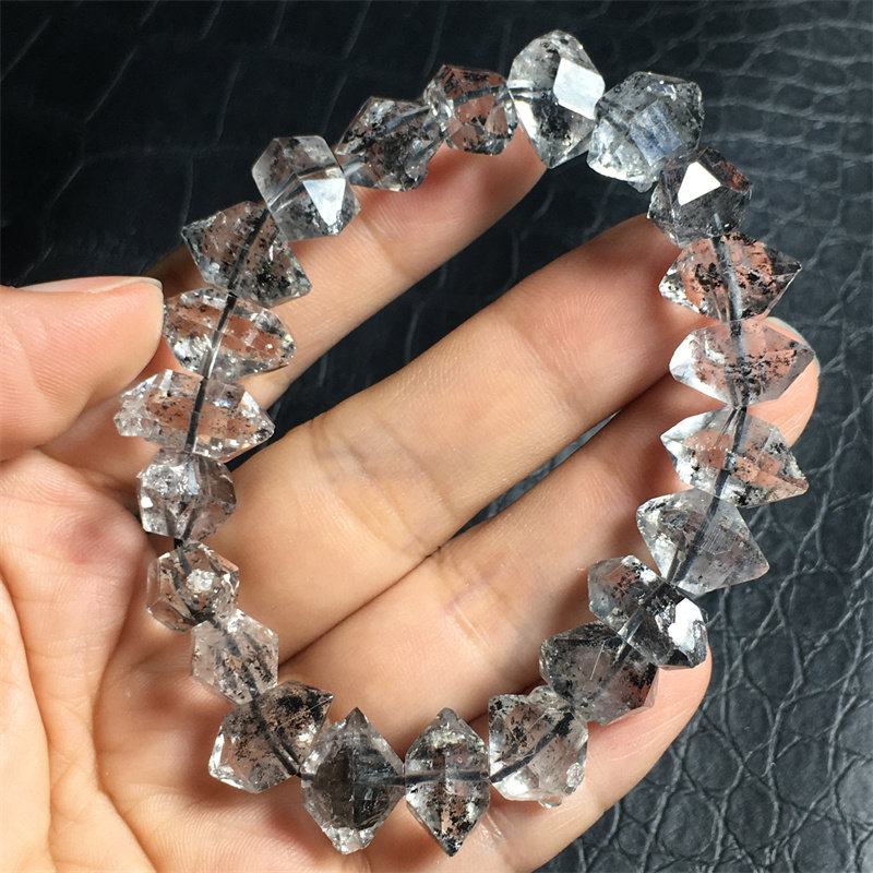 天然水晶黑沙幽灵赫尔基蒙闪灵钻骨干双尖手链吊坠原矿石墨手串女
