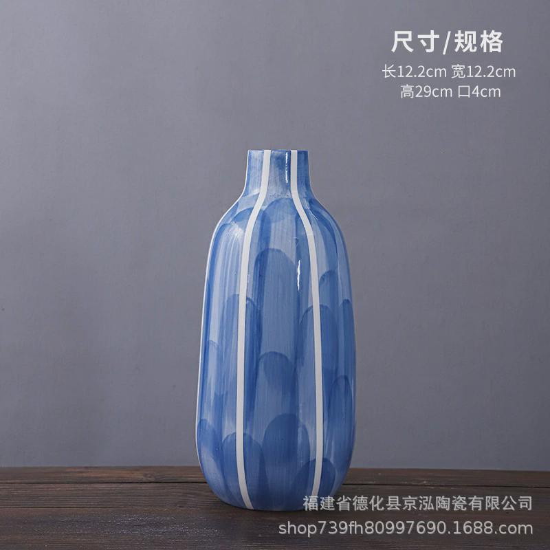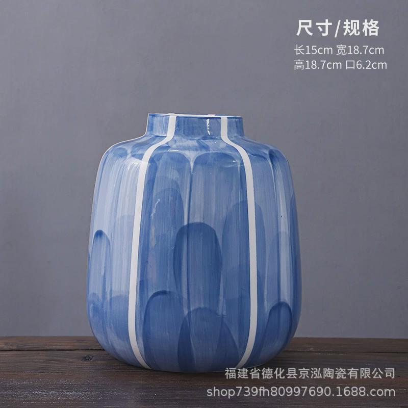 蓝色陶瓷花瓶摆件客厅新中式玄关酒柜餐桌干花插花电视柜装饰摆设