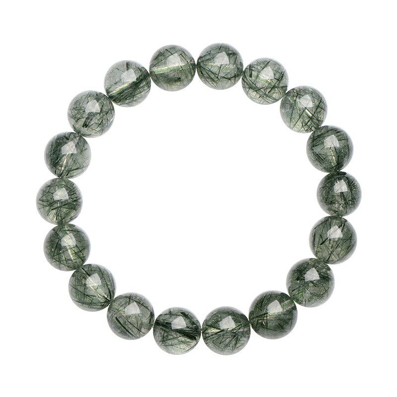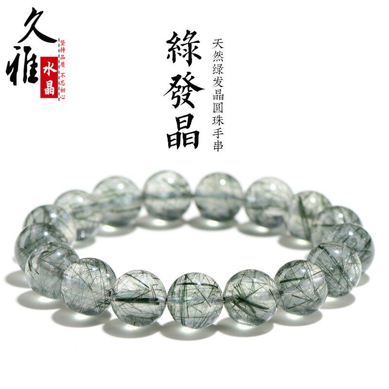 2026久雅水晶 天然猫眼绿发圆珠手串 时尚绿猫眼顺发绿色发手链