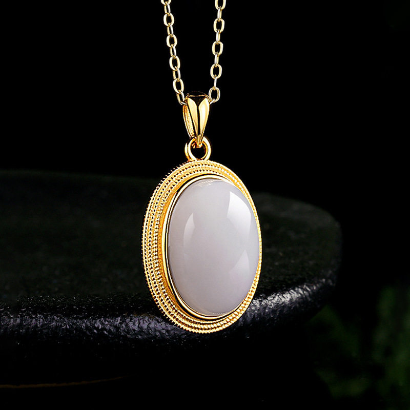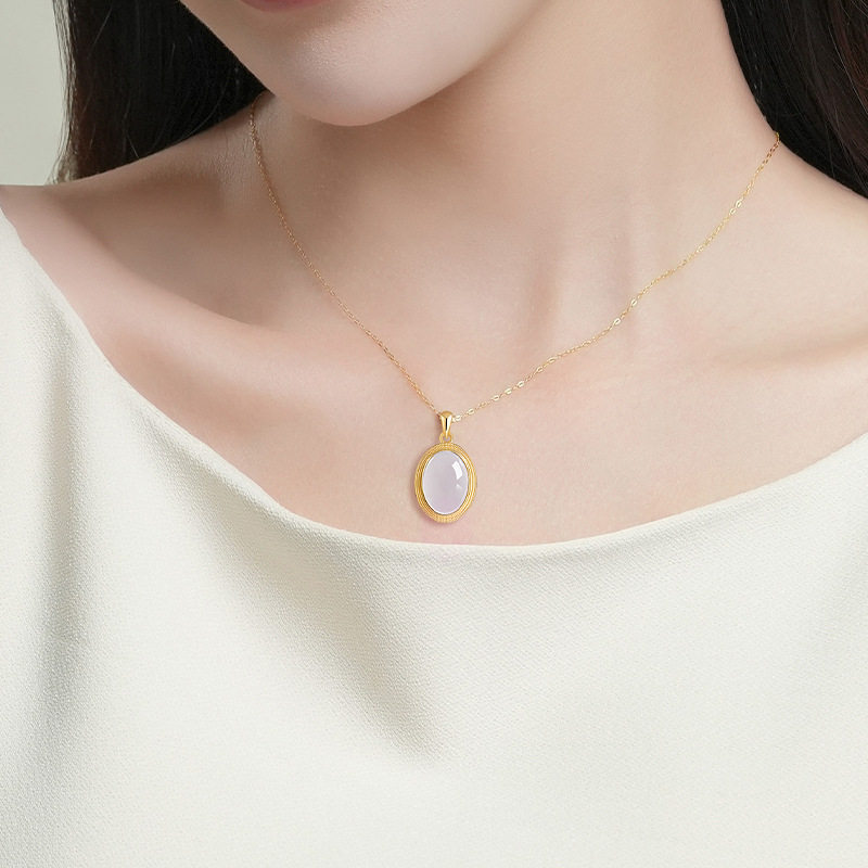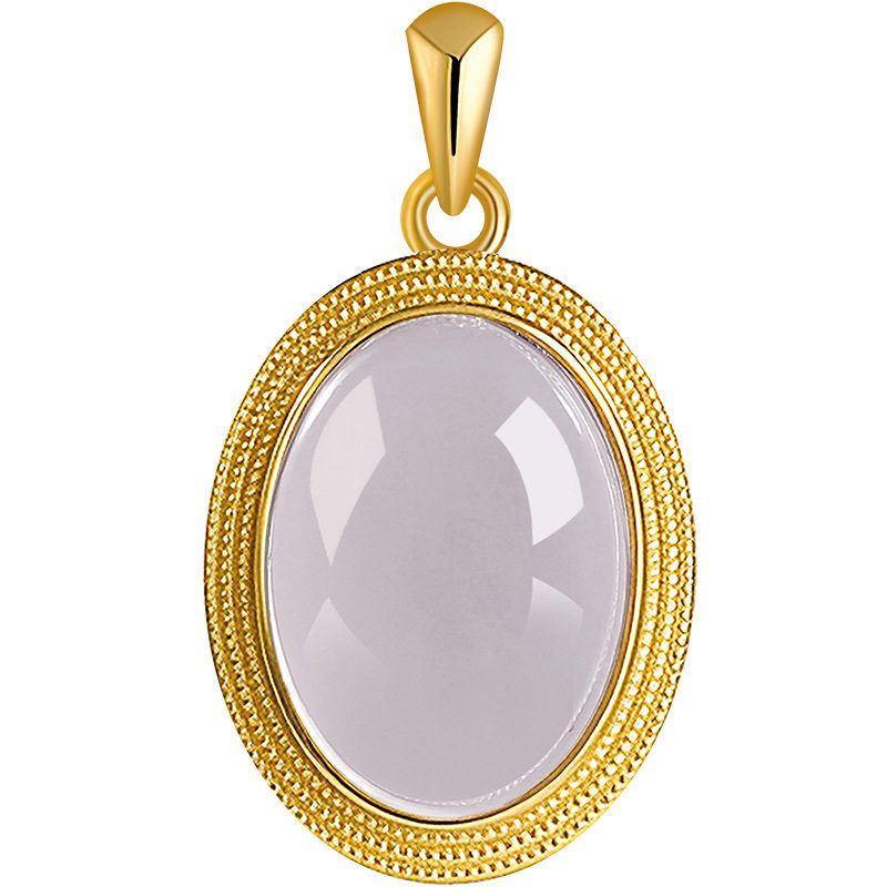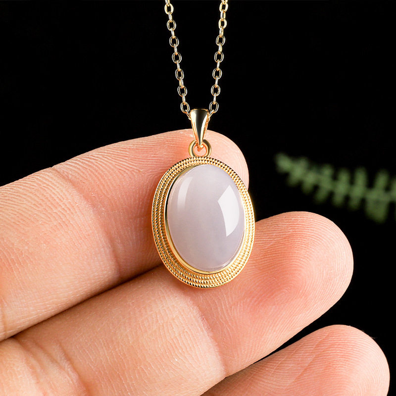 正品天然和田玉烟紫蛋面吊坠玉石S925银镶嵌挂件项链男女款玉坠