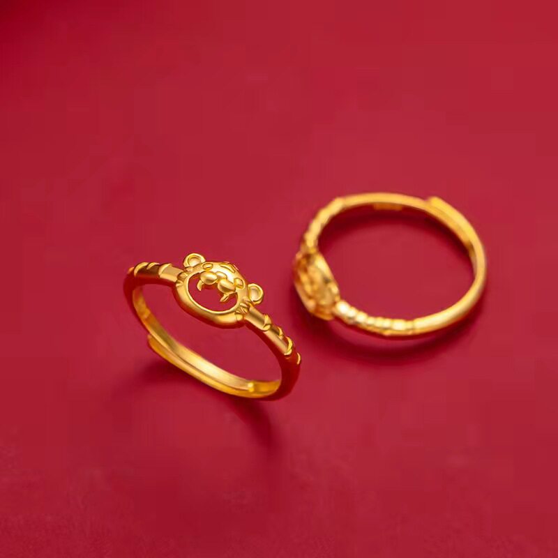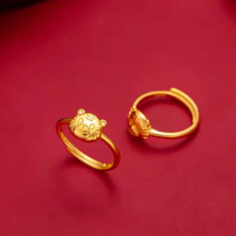 2026年新款本命年生肖虎戒指女越南沙金仿真黄色虎年小老虎不掉色