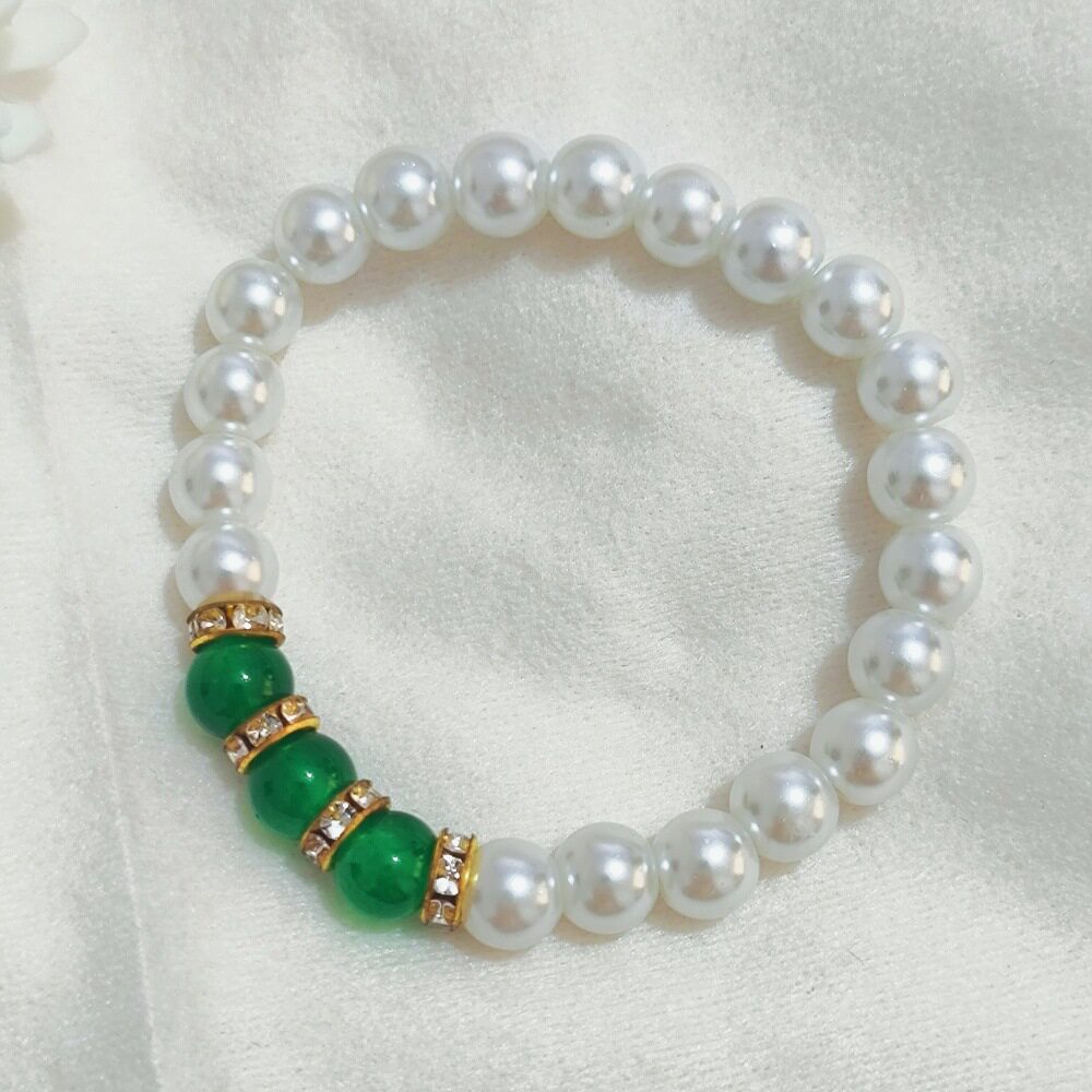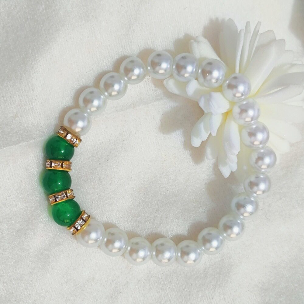 森系清新绿色珍珠手链高级绿叶串联圆润绿珠设计仿若林间精灵的