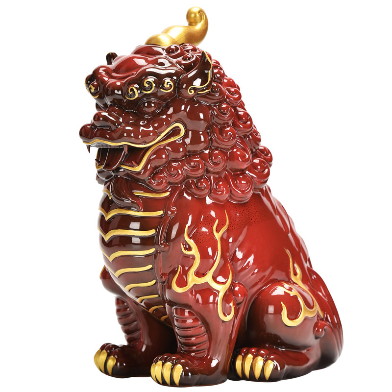 大号貔貅摆件一对红色陶瓷新中式家居客厅装饰办公室桌面招财摆设