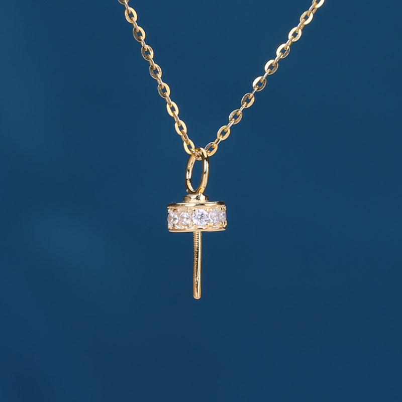 DIY珍珠配件s925纯银精工微镶简约时尚吊坠项坠项链坠空托配饰品