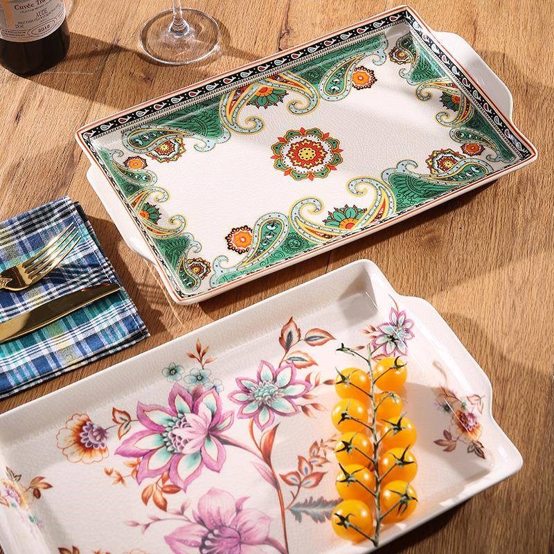 厂新陶瓷a托盘茶盘欧式美式茶具托盘家用长方形摆盘收纳盘摆件现