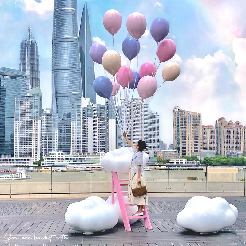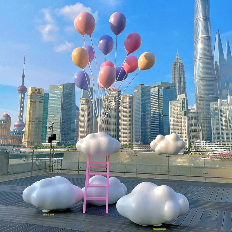 网红云朵气球玻璃钢雕塑景区打卡拍照美陈布置草坪造景装饰大摆件