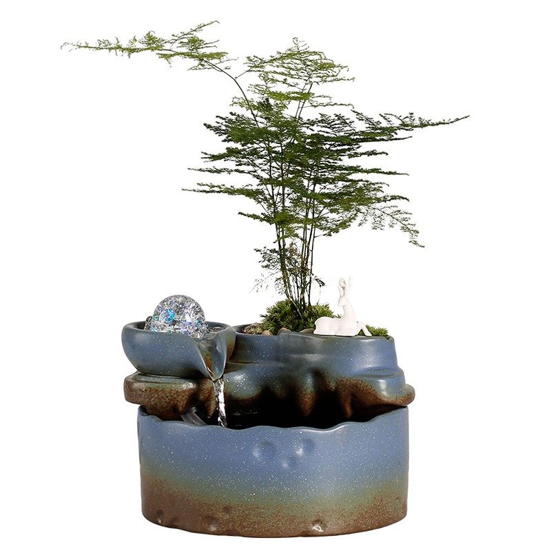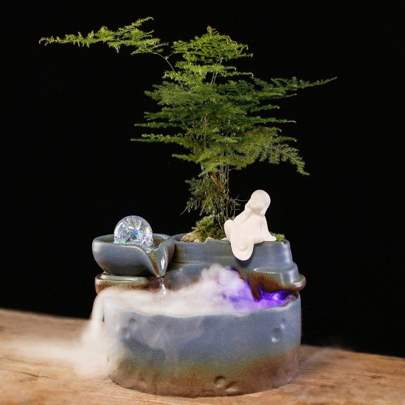 流水摆件小型鱼缸循环水生财招财喷泉景观盆景玄关办公室茶几桌面
