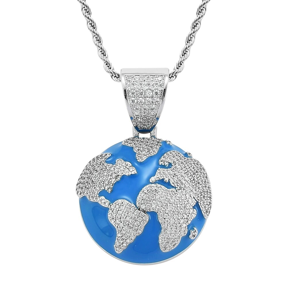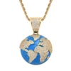 欧美跨境项链嘻哈滴油微镶锆石蓝色地球吊坠嘻哈潮牌个性吊坠男士