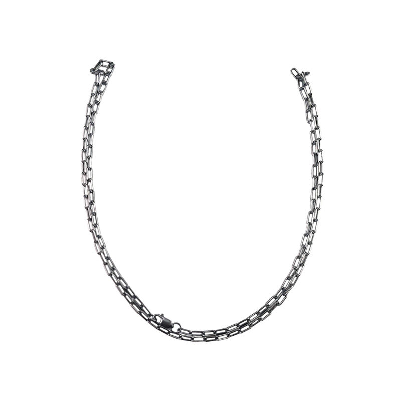 手工纯银925项链男女做旧复古素链锁骨链定制情侣潮流嘻哈十字链