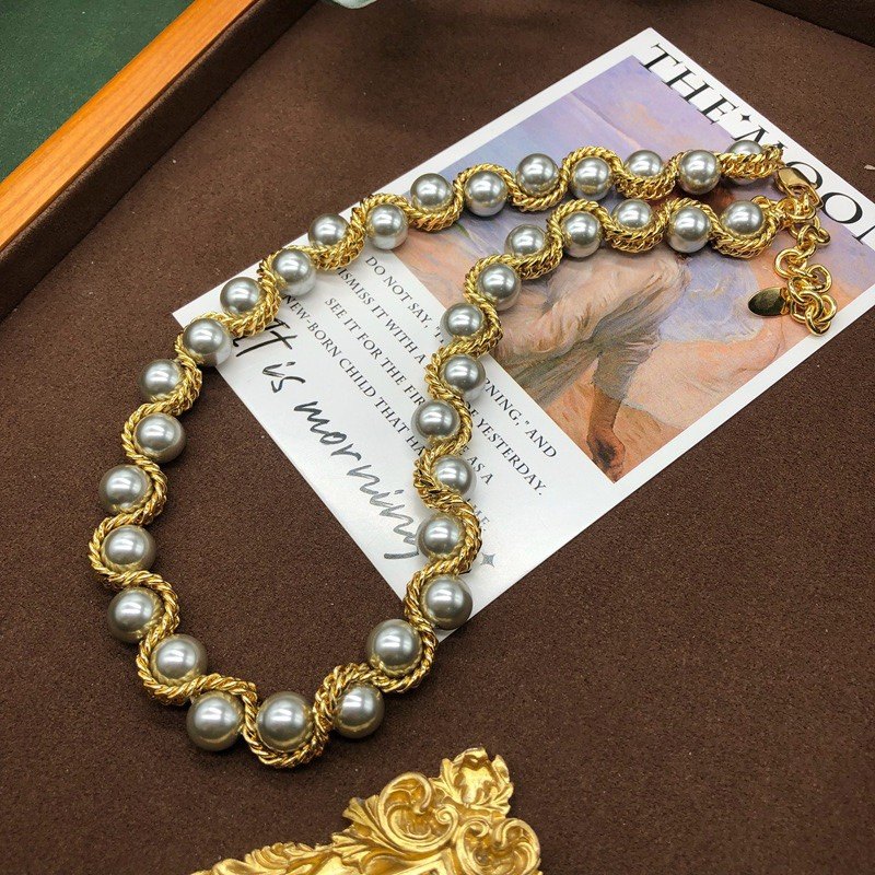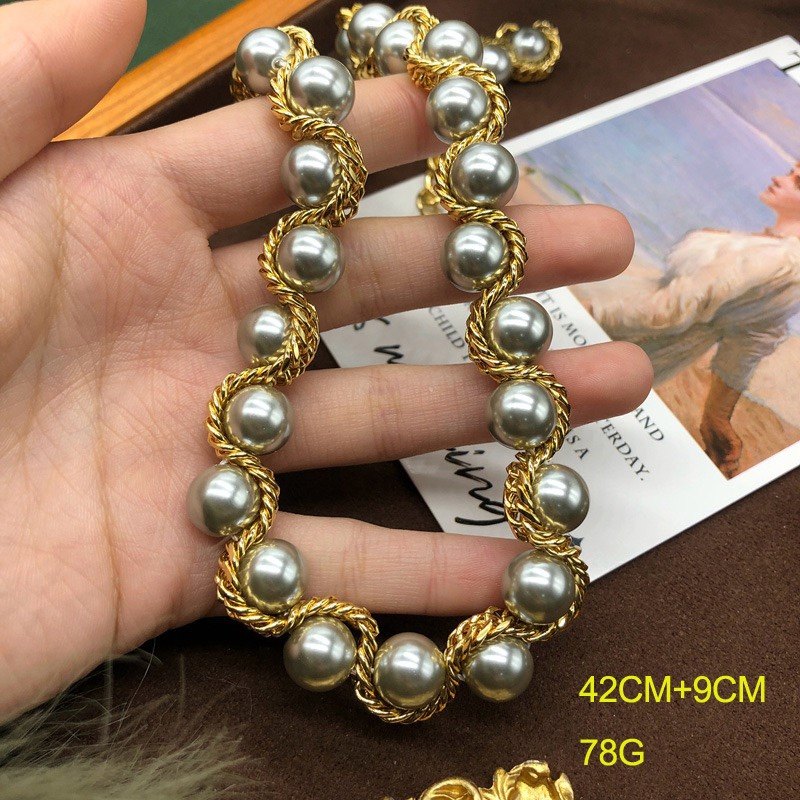优雅气质小香风毛衣链潮流时尚五金灰色仿珍珠颈链项链耳钉百搭