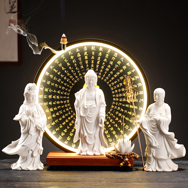 娑婆三圣佛像摆件地藏王观音菩萨释迦牟尼佛家居客厅供奉桌面摆设