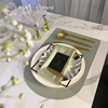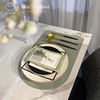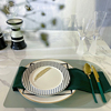 现代轻奢样板房间餐盘墨绿黑白条纹餐具餐垫刀叉餐巾餐桌套盘摆台